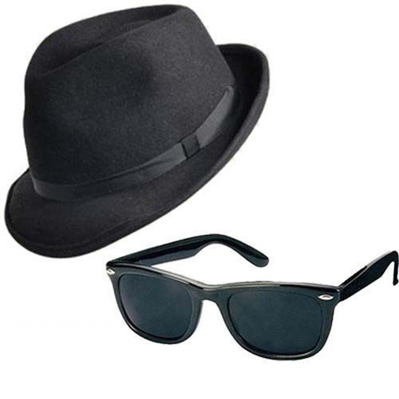 Blues Brother Hat and Glasses Set Fancy Dress Costume Gangster Mob Accessories