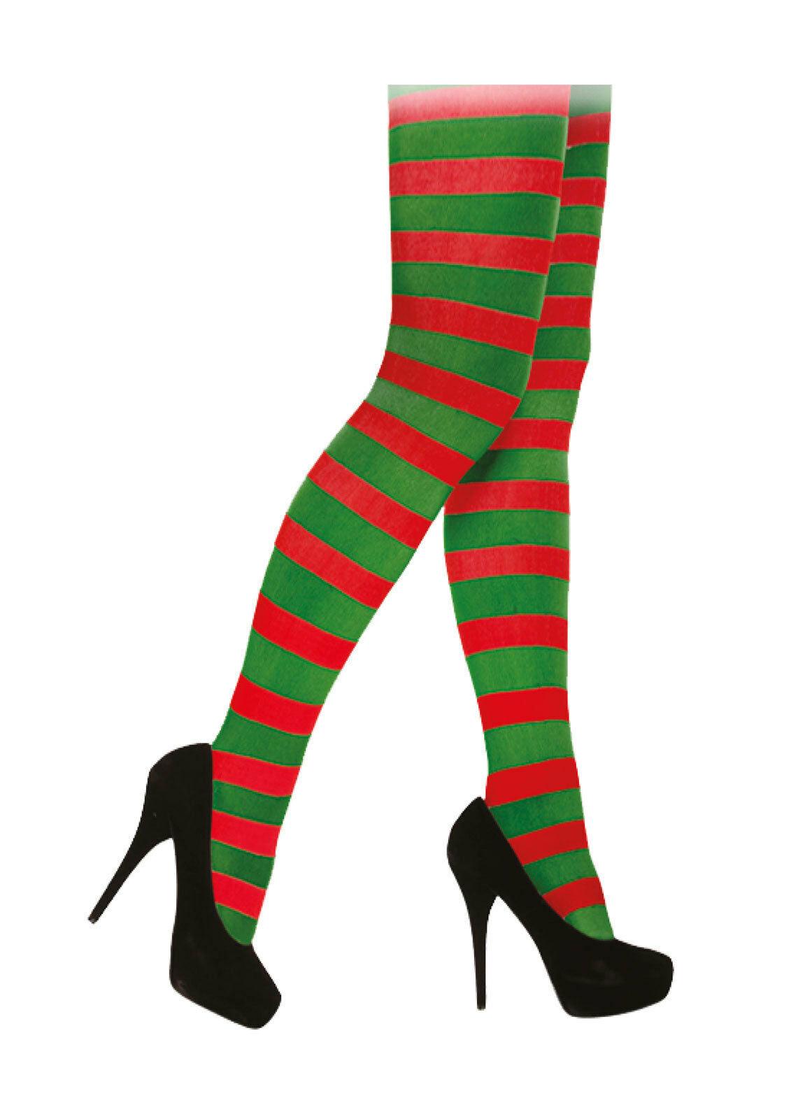 Christmas Elf Red Green Striped Tights Stripy Ladies Festive Novelty Fun