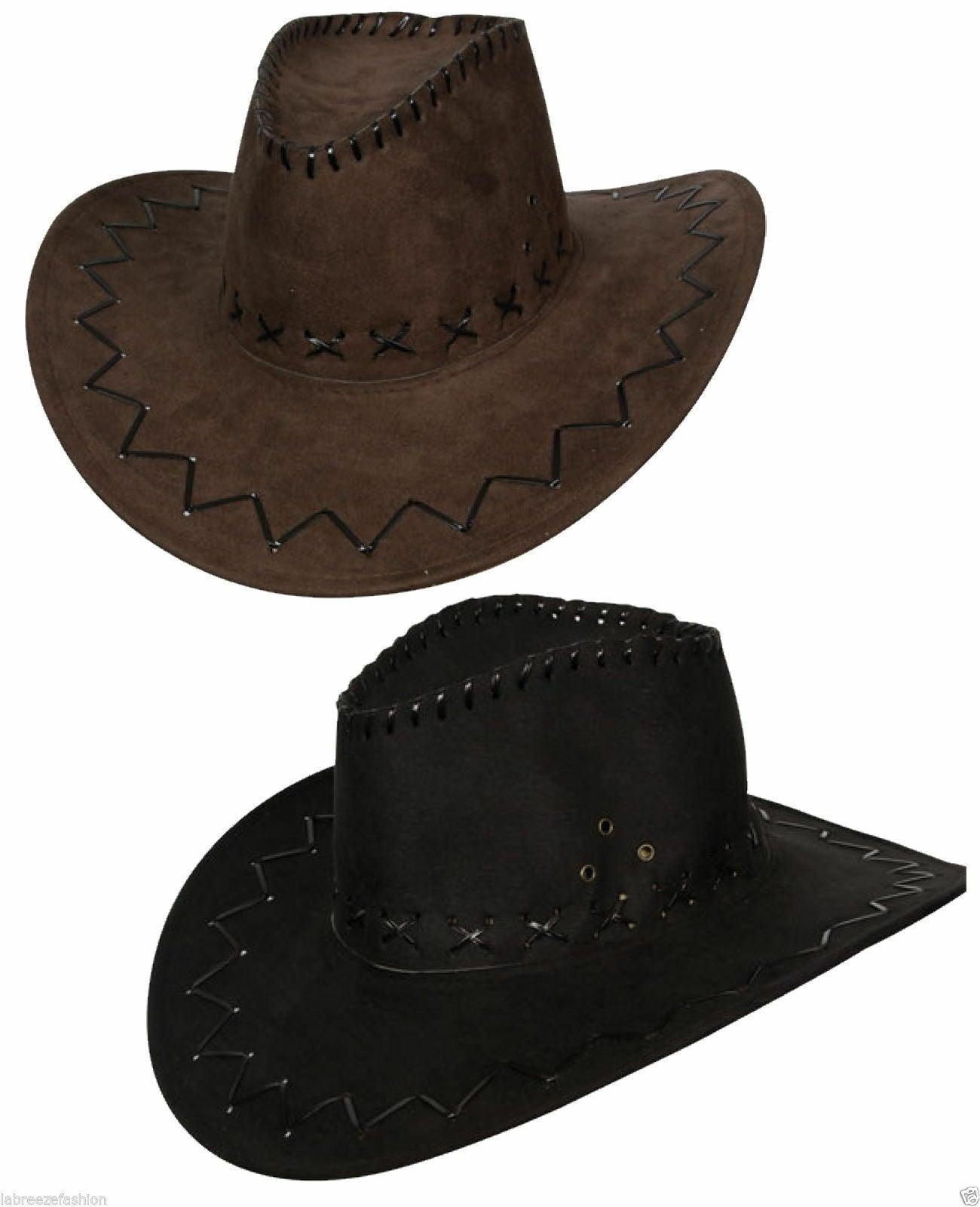 New Men’s Ladies Cowboy Hat Suede Look Wild West Black & Brown Fancy Dress Hat