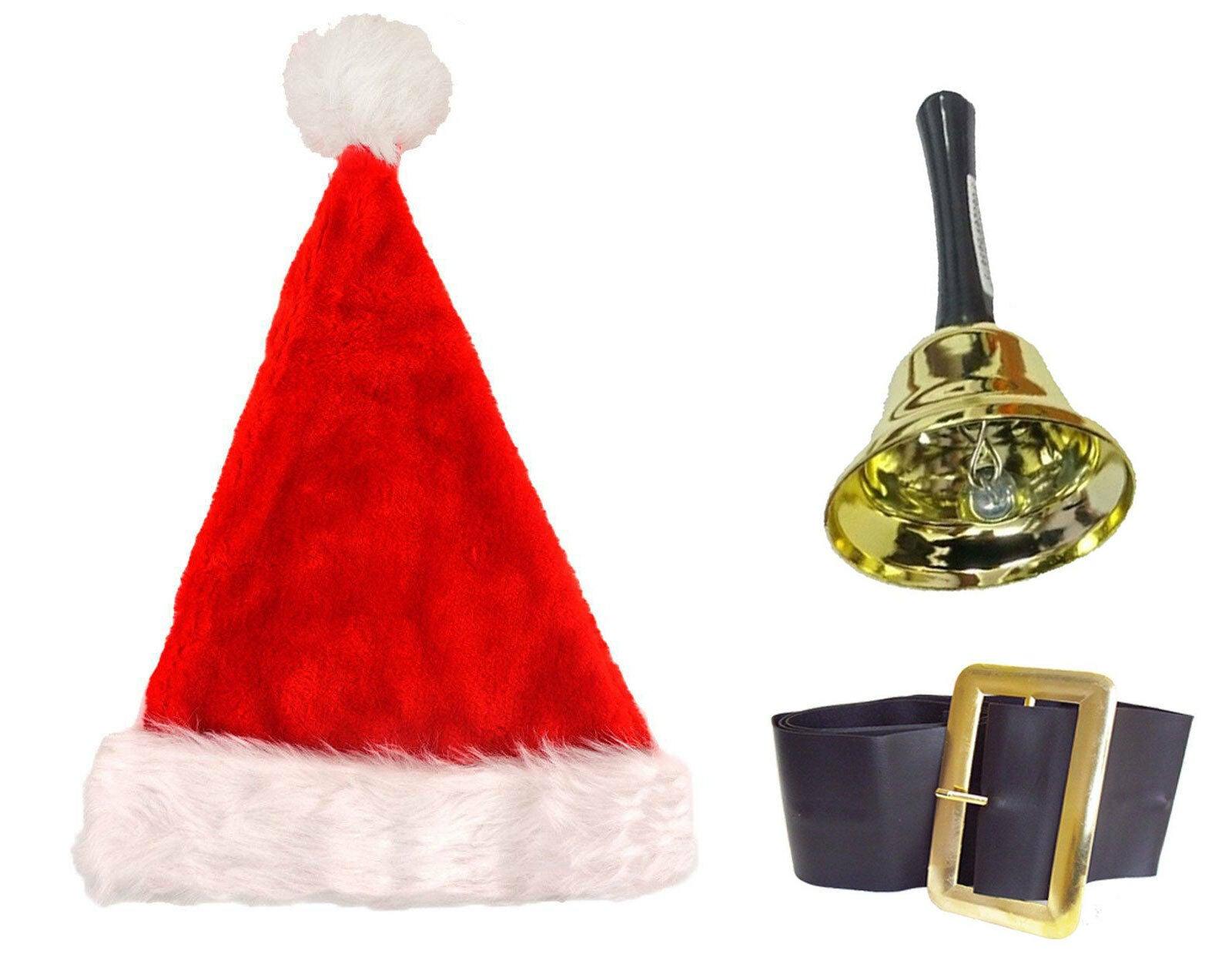 Deluxe Plush Santa Hat Adults Chunky Buckle Belt Jingle Bell Xmas Fancy Dress