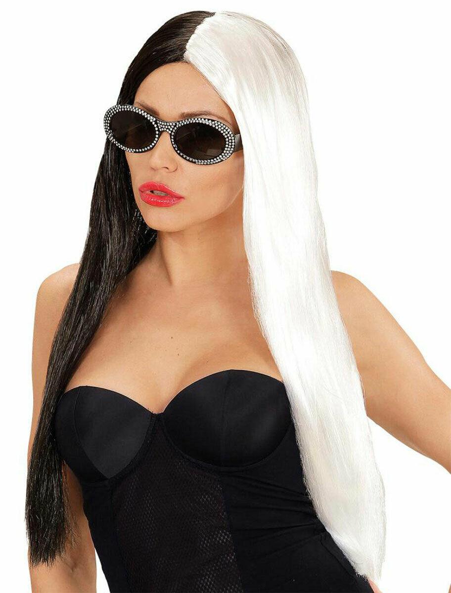 Demonia Wig Black White Long Gothic Hair Ladies Girls Halloween Party Wig