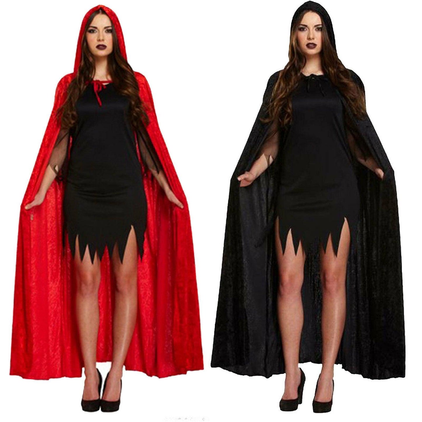 Devil Velvet Cape Black Red W/hood Costume Fancy Dress Party