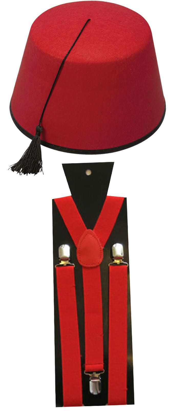Fez Hat Red Plain Bow Tie Braces Moroccan Turkish Fancy Outfit Set