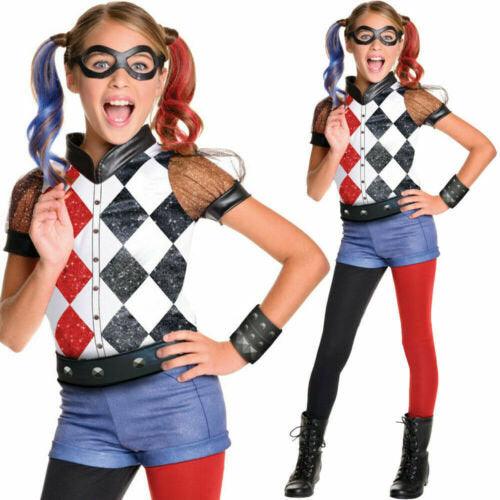 Girls Deluxe Harley Quinn Costume Girls Fancy Dress Superhero Batman Halloween