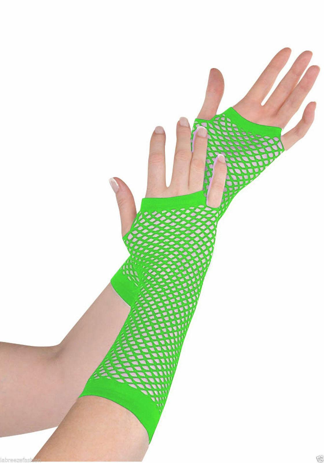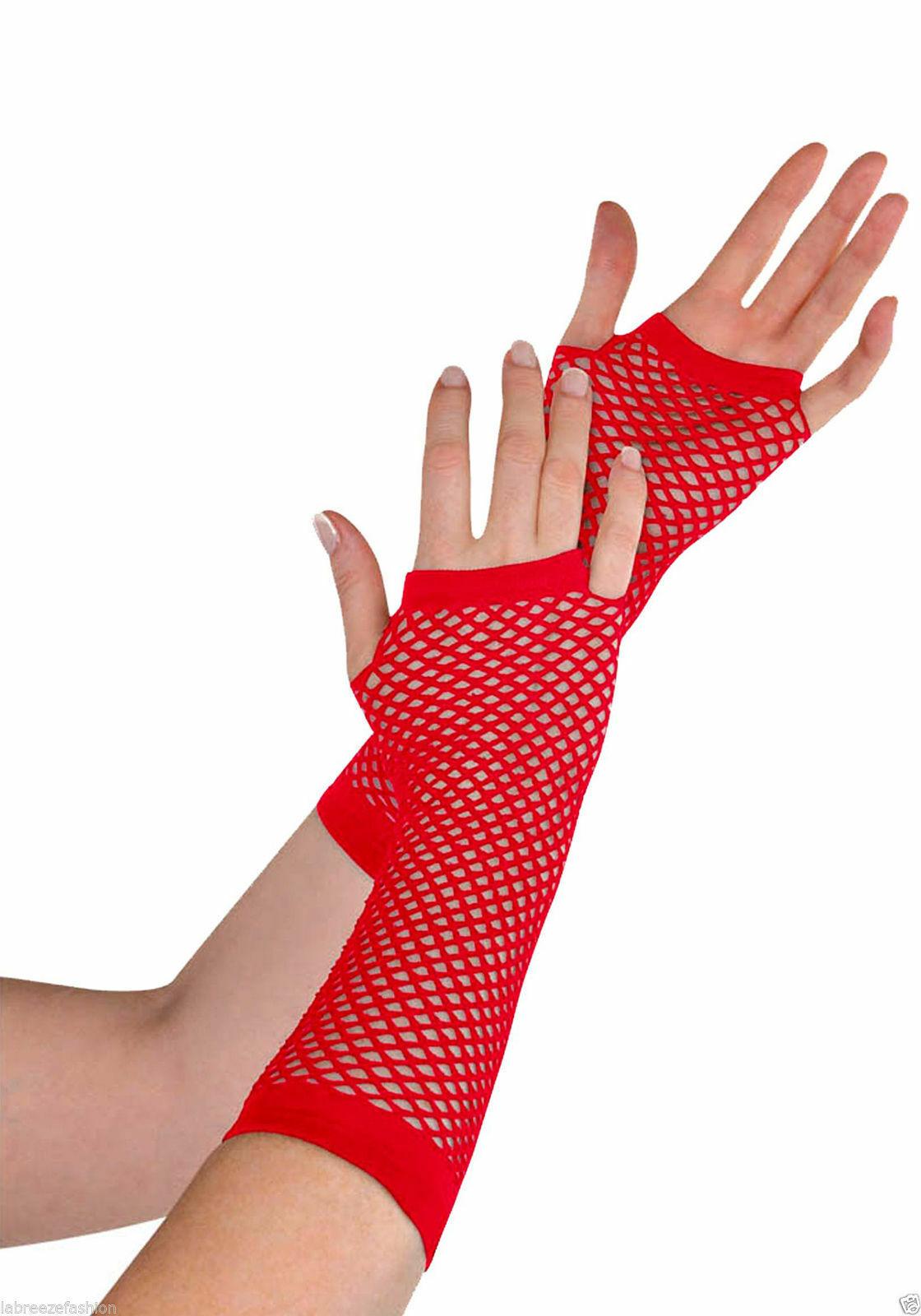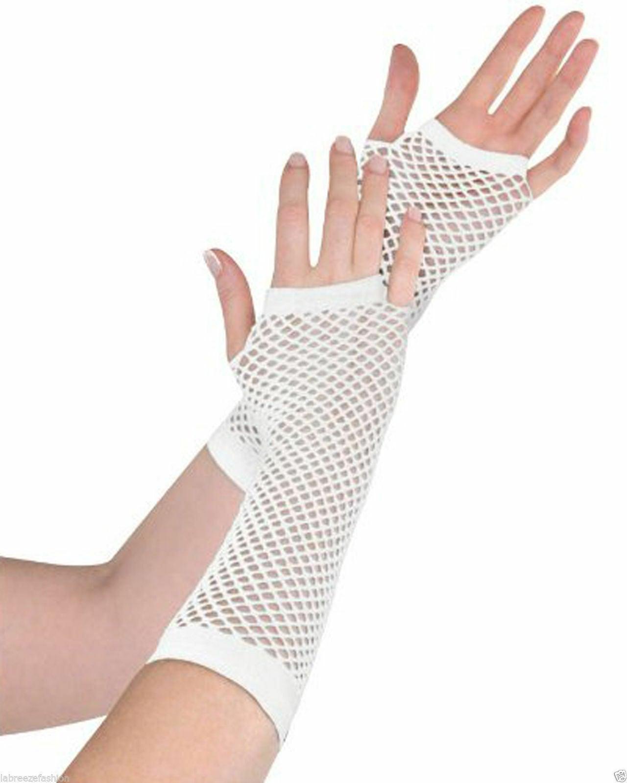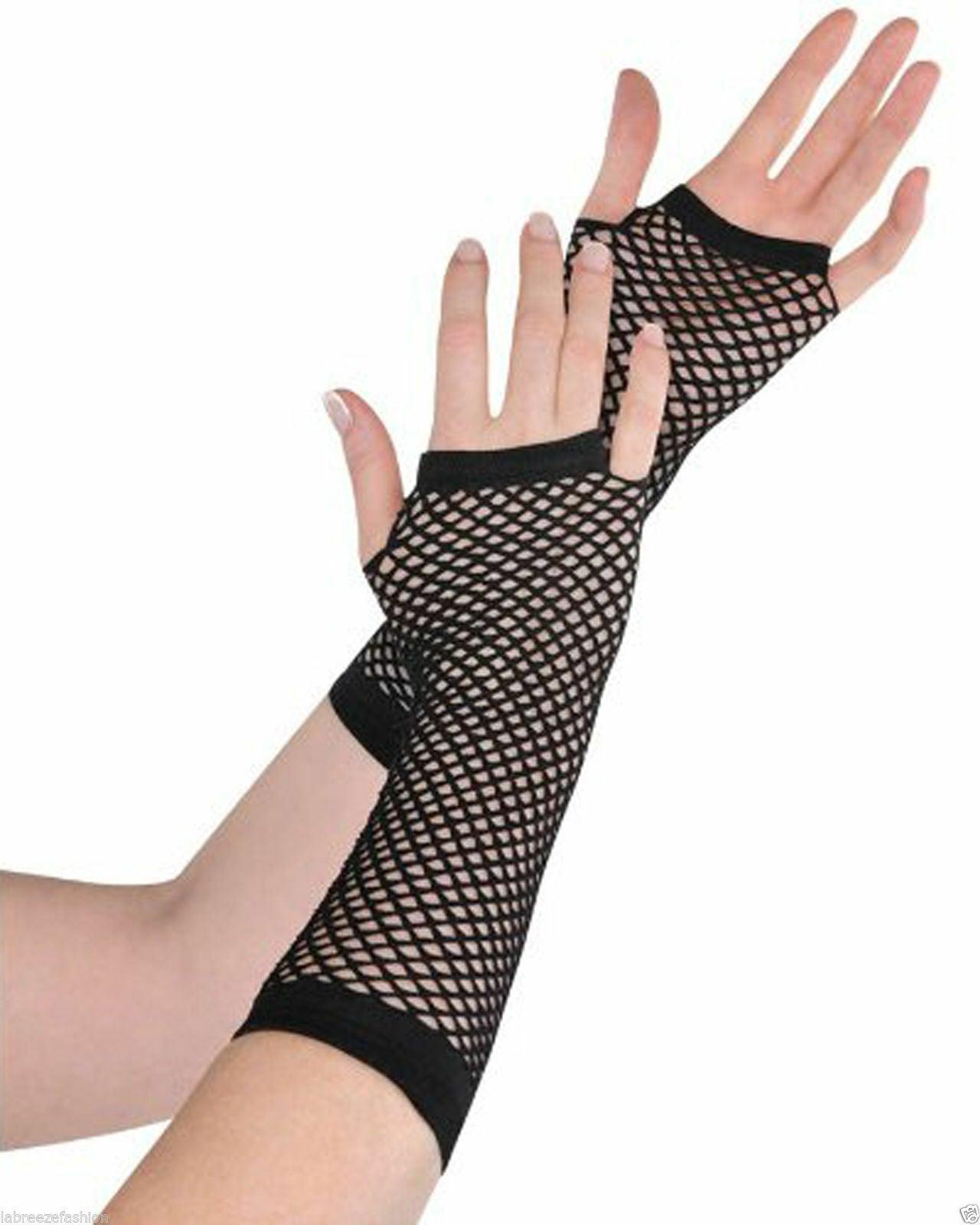 Ladies Girls Long Mesh Fishnet Fingerless Gloves Elbow Long Glove Hen night Party wear
