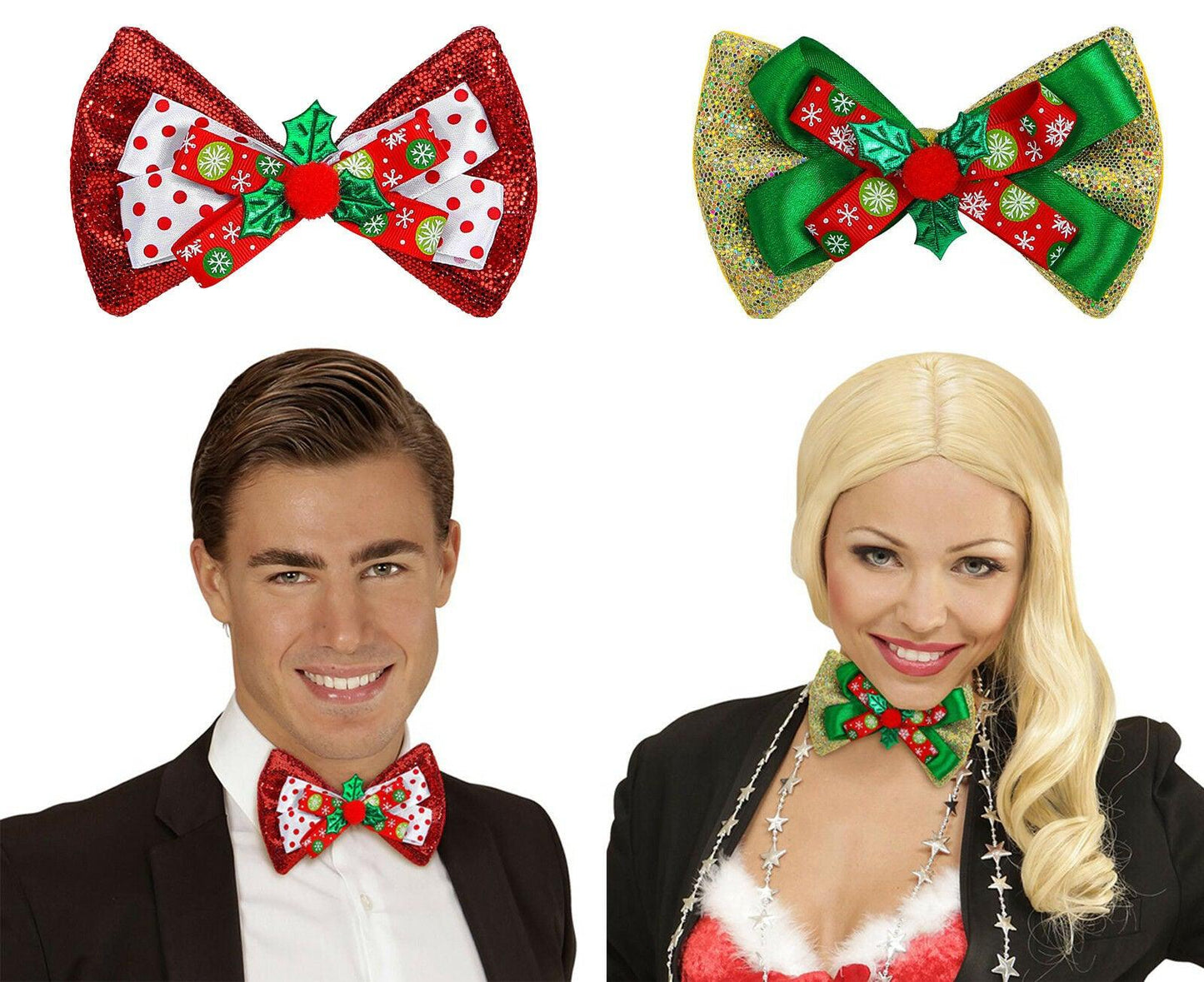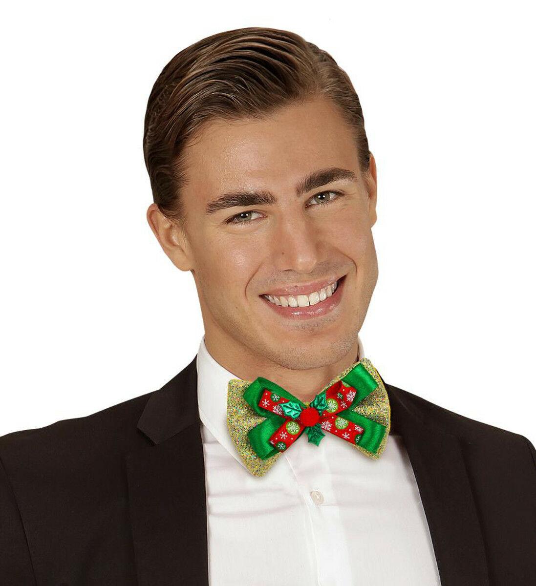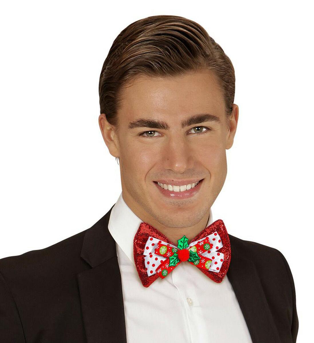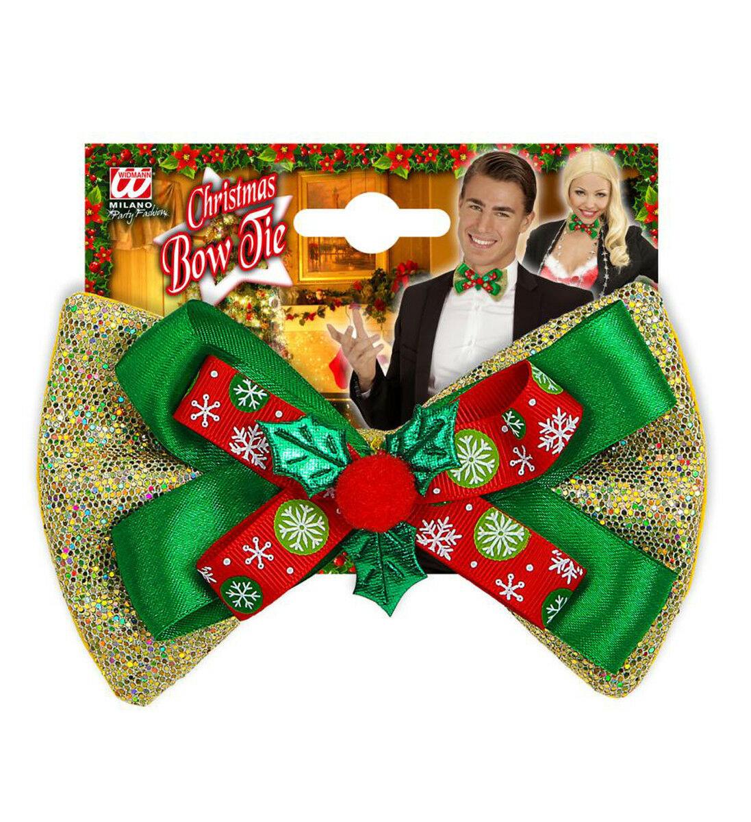 Glitter Christmas Elasticated Bow Tie Ribbon 3D Holly Xmas Party Fancy Dress