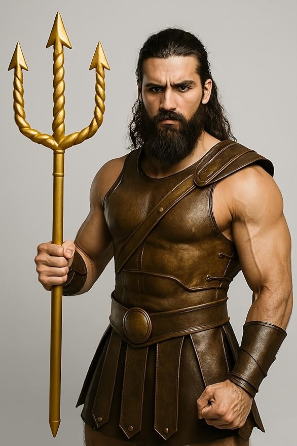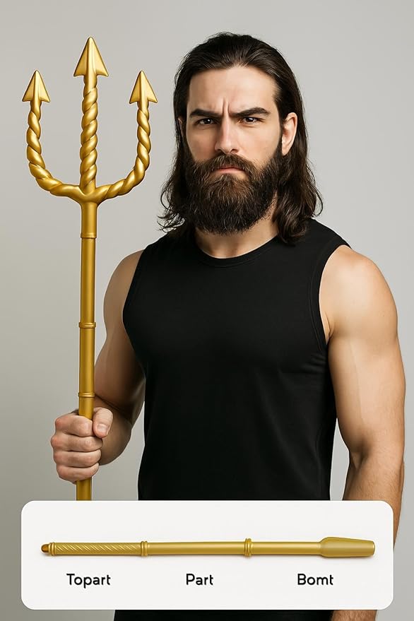 Unleash your inner sea god with our Gold Trident Poseidon Neptune Spear! This stunning 3-prong trident is the perfect accessory for anyone looking to embody the mythical power of Poseidon or Neptune at Halloween, cosplay events, costume parties, or any underwater-themed gathering. Crafted with attention to detail, this ornate trident elevates any costume, making you the center of attention!