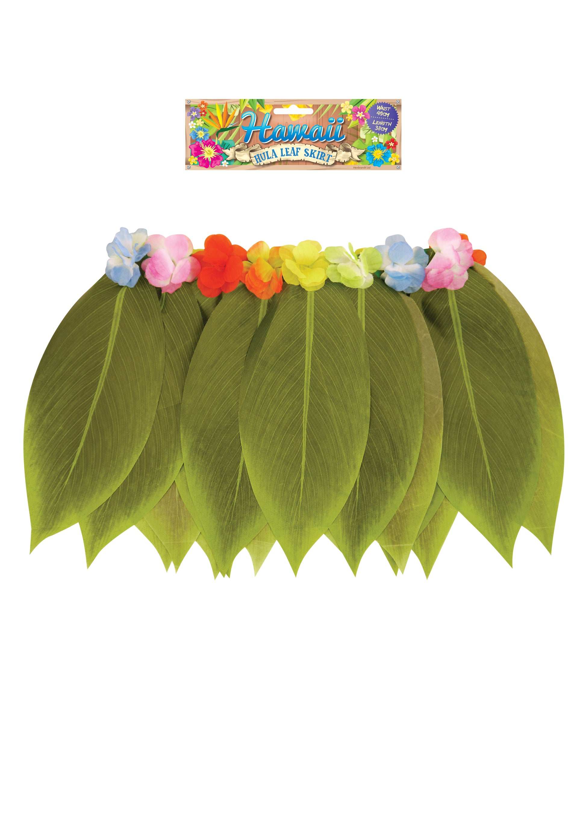 Green Hula Leaf Skirt with Flowers 80cm W x 38cm L Hawaiian Summer Beach Party Hawaii Fancy Dress
