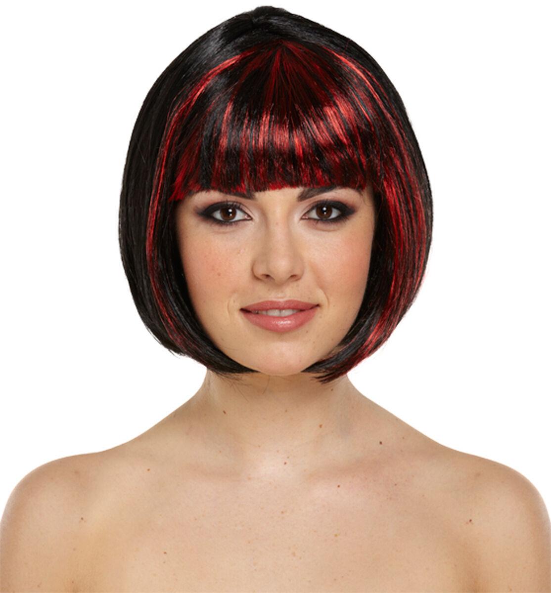 HALLOWEEN LADIES GIRLS BLACK RED SHORT BOB WIG HAIR FANCY DRESS OUTFIT ACCESSORY