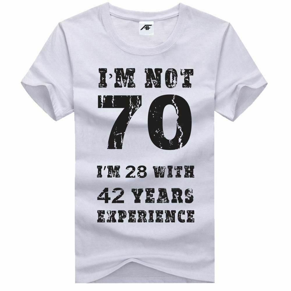 I M Not 70 I M 28 with 42 Years Experience Printed 70th Birthday Gift T-Shirt