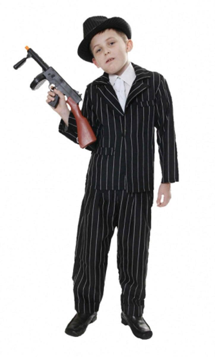 Kids Boys Gangster Black Pinstripe Costume 1920’s Fancy Dress Party Outfit