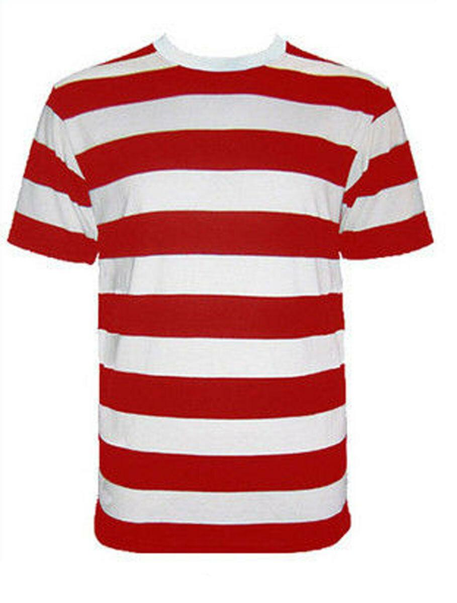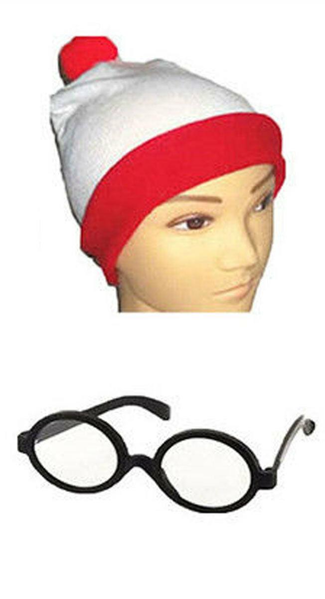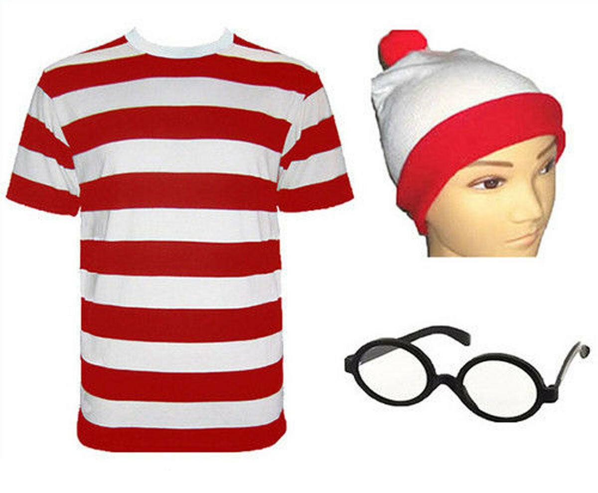 Kids Boys Red&White Striped T-Shirt Hat Glasses Book Day Fancy Dress Costume LOT