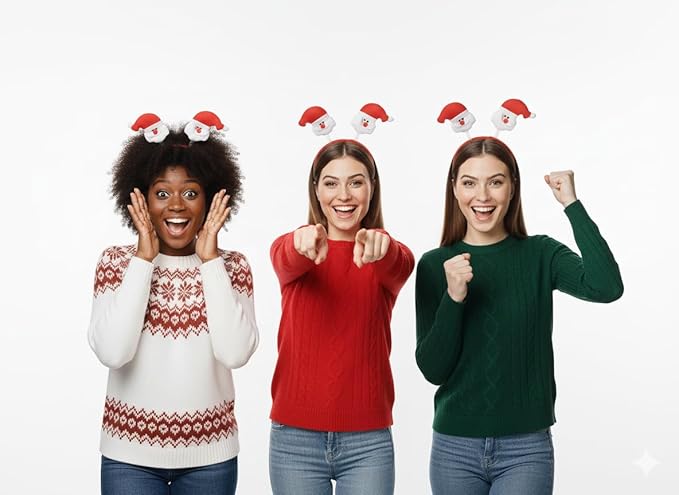 Bring festive fun to your holiday celebrations with the labreeze Christmas Santa Head Bopper Headbands. This set of 3 features cheerful Santa toppers mounted on spring attachments that wobble with every movement, creating a playful and eye-catching effect. Lightweight and comfortable, these novelty headbands are perfect for Christmas parties, school events, office celebrations, family gatherings, and seasonal dress-up. Ideal for group celebrations, party favors, or festive photo opportunities.