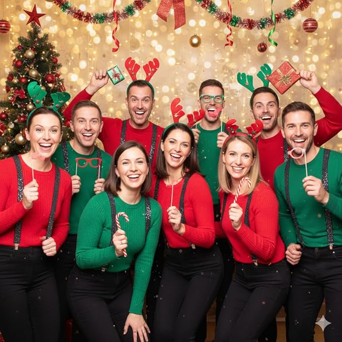 Add sparkle and style to your festive outfit with the labreeze Pack of 10 Black Sequin Braces. These adjustable suspenders are designed for adults and teens, making them perfect for Christmas parties, holiday fancy dress, themed performances, and festive costume events. The glittery sequins create a dazzling effect, while the adjustable straps ensure a comfortable fit for most sizes. Ideal for coordinated group outfits, choir performances, or holiday gatherings.