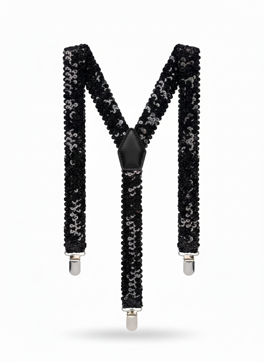 labreeze Pack of 10 Black Sequin Braces – Sparkly Adjustable Suspenders for Christmas