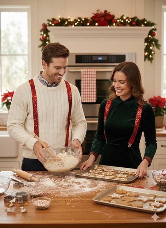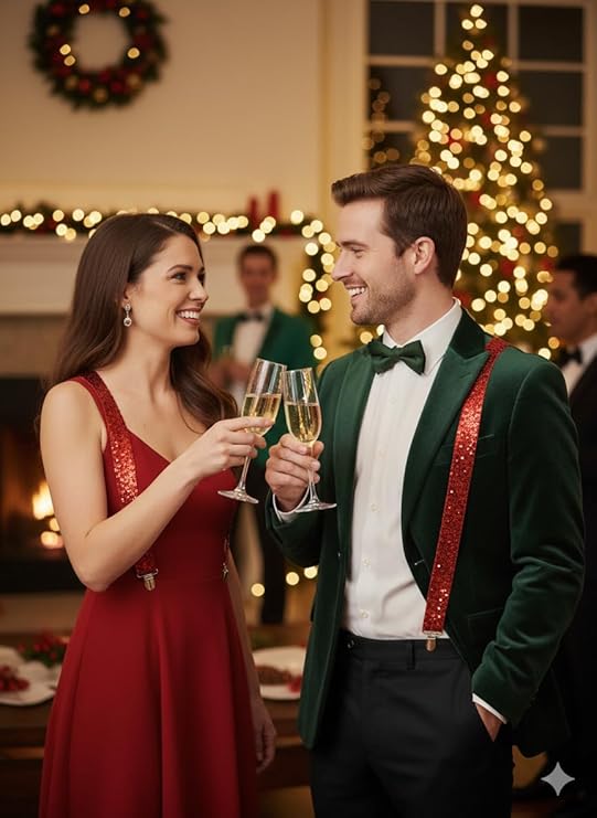 Add festive sparkle to your holiday outfit with the labreeze Pack of 2 Red Sequin Braces. These adjustable suspenders are designed for adults and teens, perfect for Christmas parties, holiday fancy dress, themed performances, and festive costume events. The glittery red sequins create a dazzling effect, while the adjustable straps ensure a comfortable fit for most sizes. Ideal for couples, duos, or coordinating group costumes.