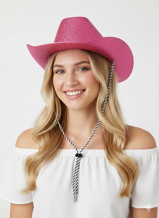 Bring sparkle to your western-themed celebrations with the labreeze Pink Glitter Cowboy Hat. This adult-sized party hat features a classic cowboy silhouette covered in vibrant pink glitter, making it perfect for New Year’s Eve parties, festivals, fancy dress, and costume events. Lightweight and comfortable, it’s ideal for adding fun, flair, and standout style to any outfit or themed occasion.