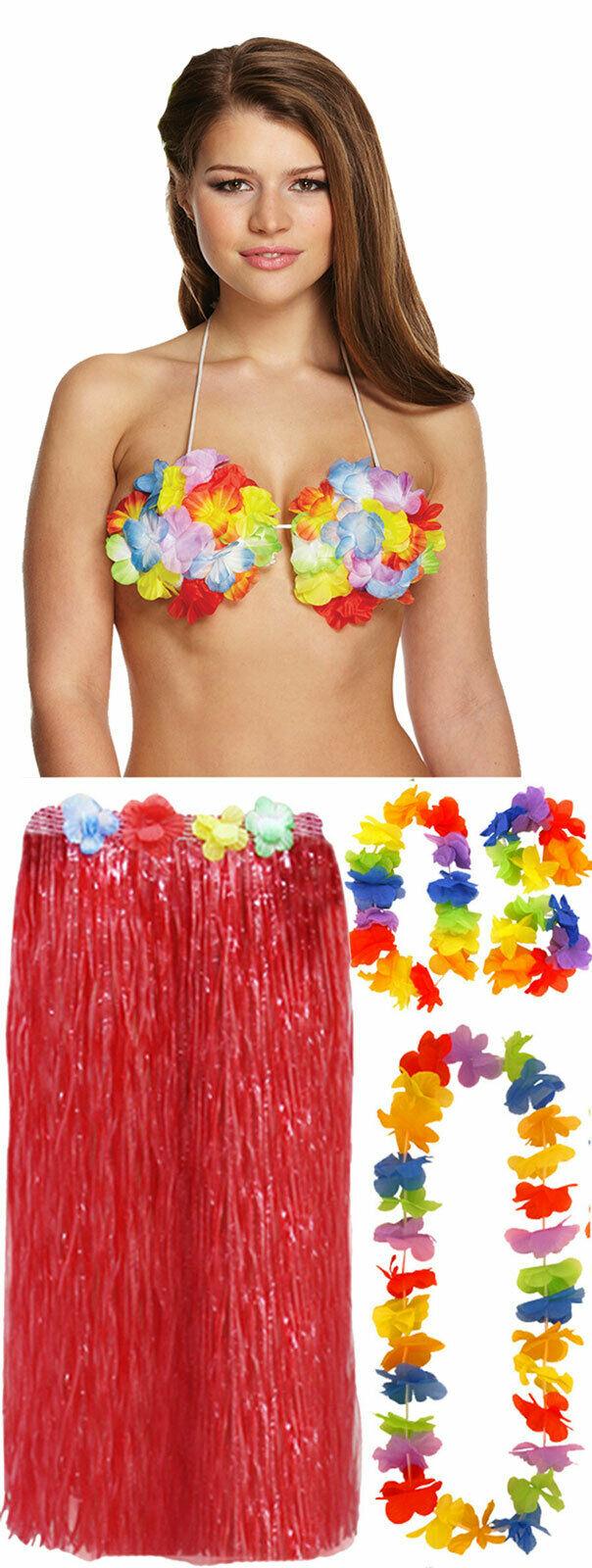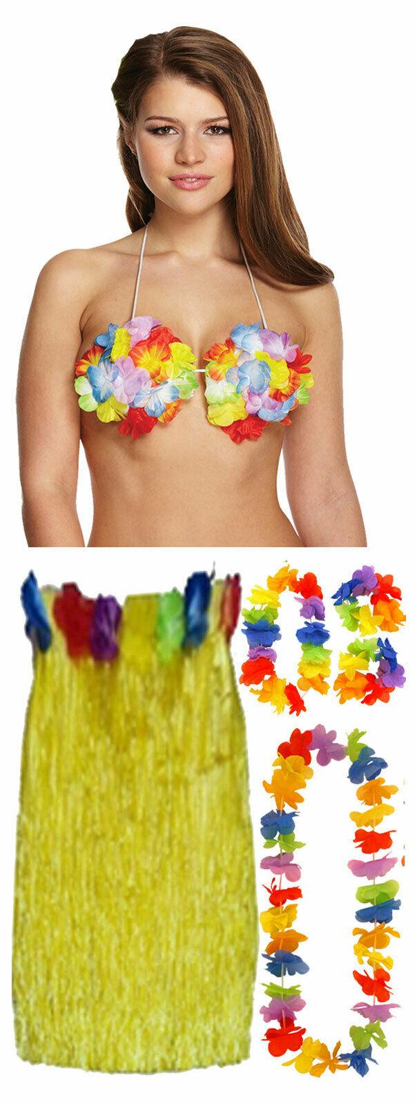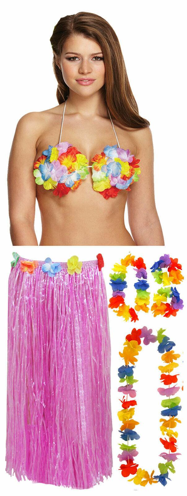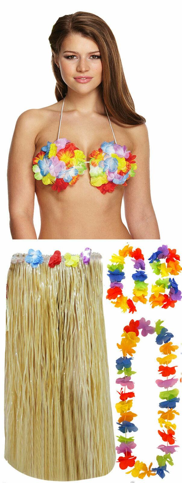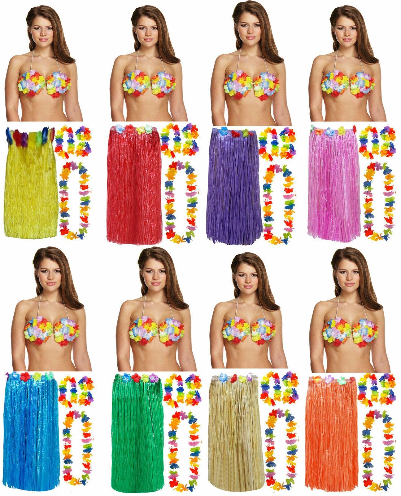 Ladies Girls 80 Cm Hula Grass Skirt Lei Set Flower Bra Hawaiian Summer Party Dress