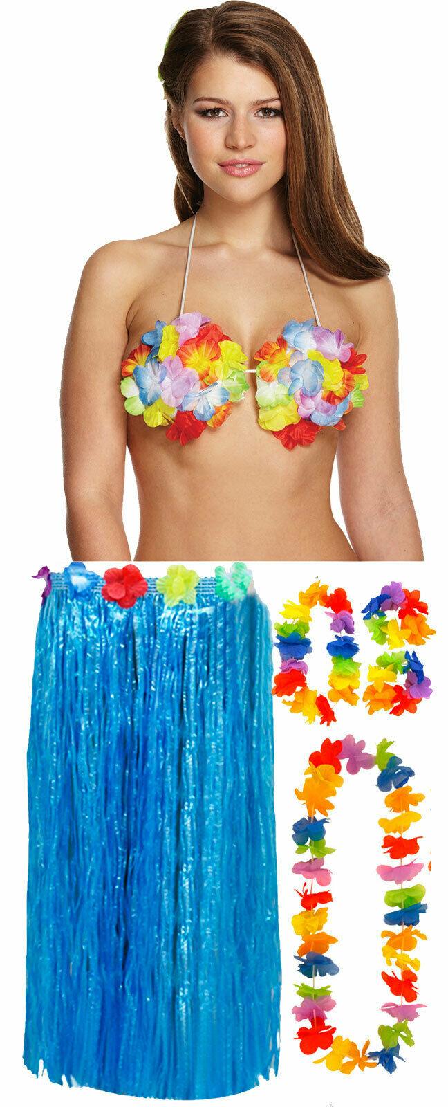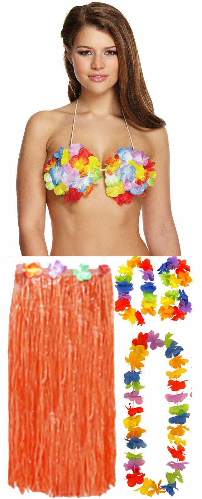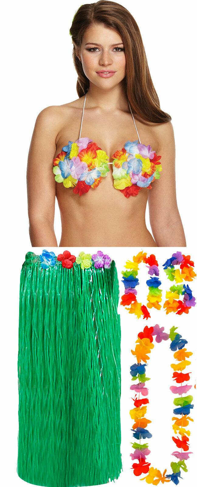 Ladies 80 Cm Hula Grass Skirt Lei Set Flower Bra Hawaiian Summer Party Dress
