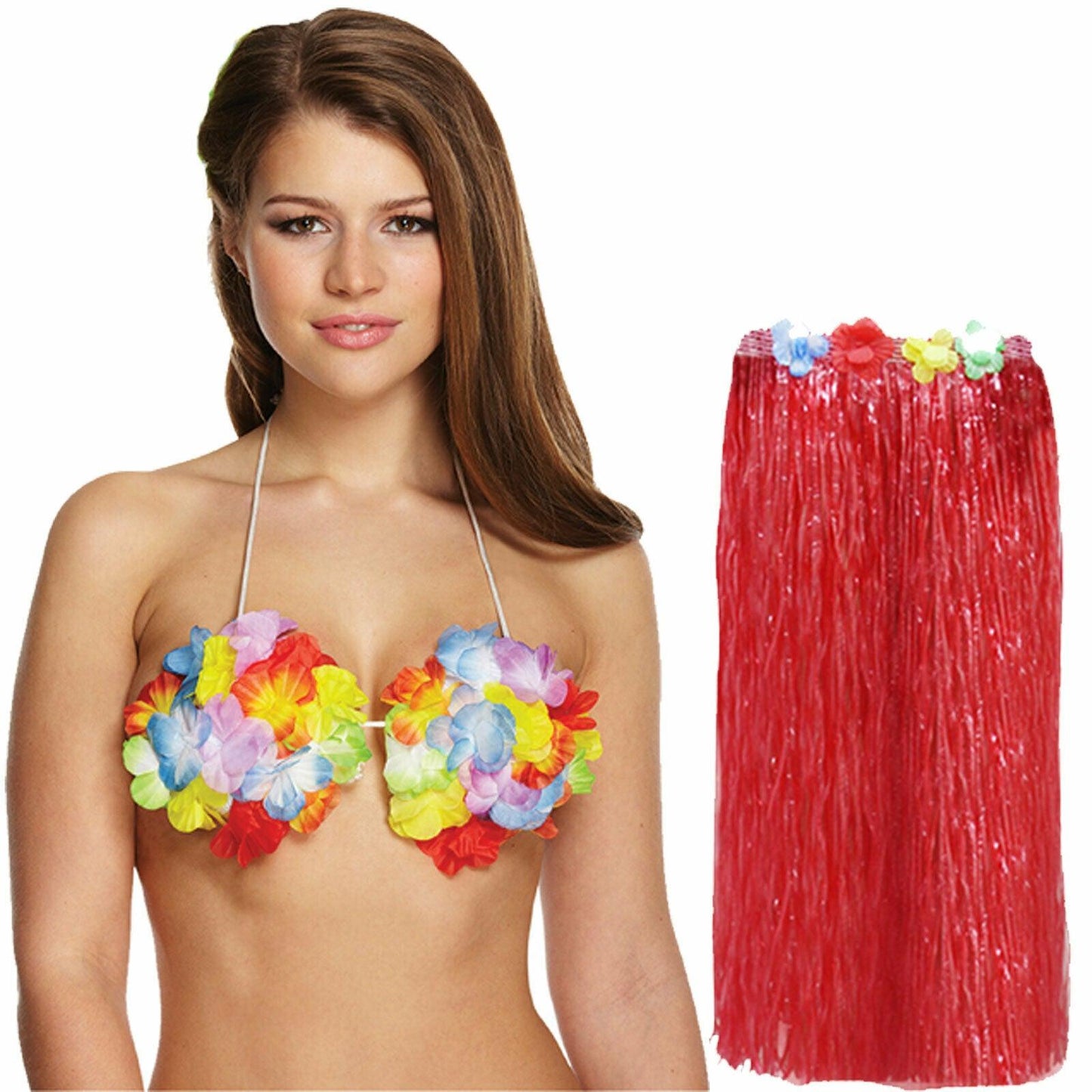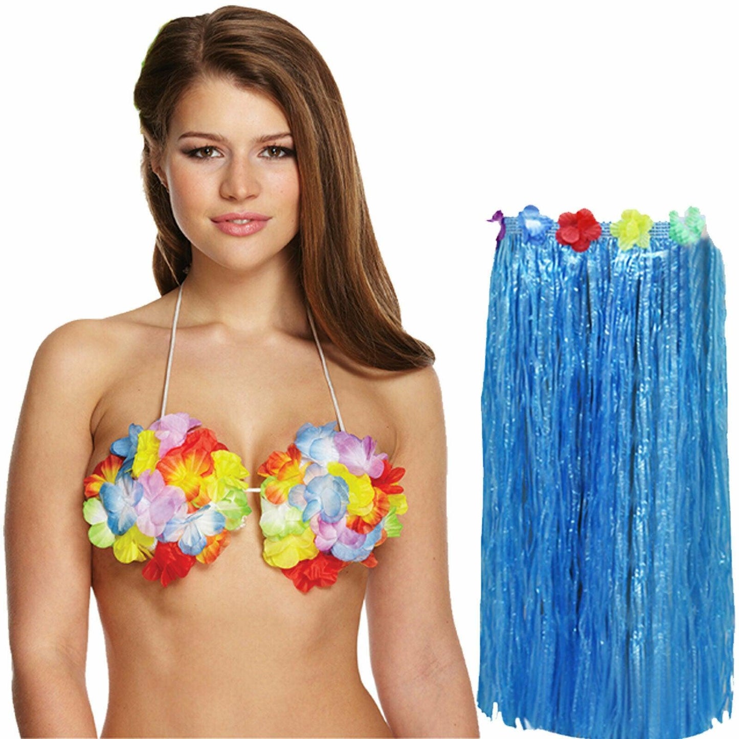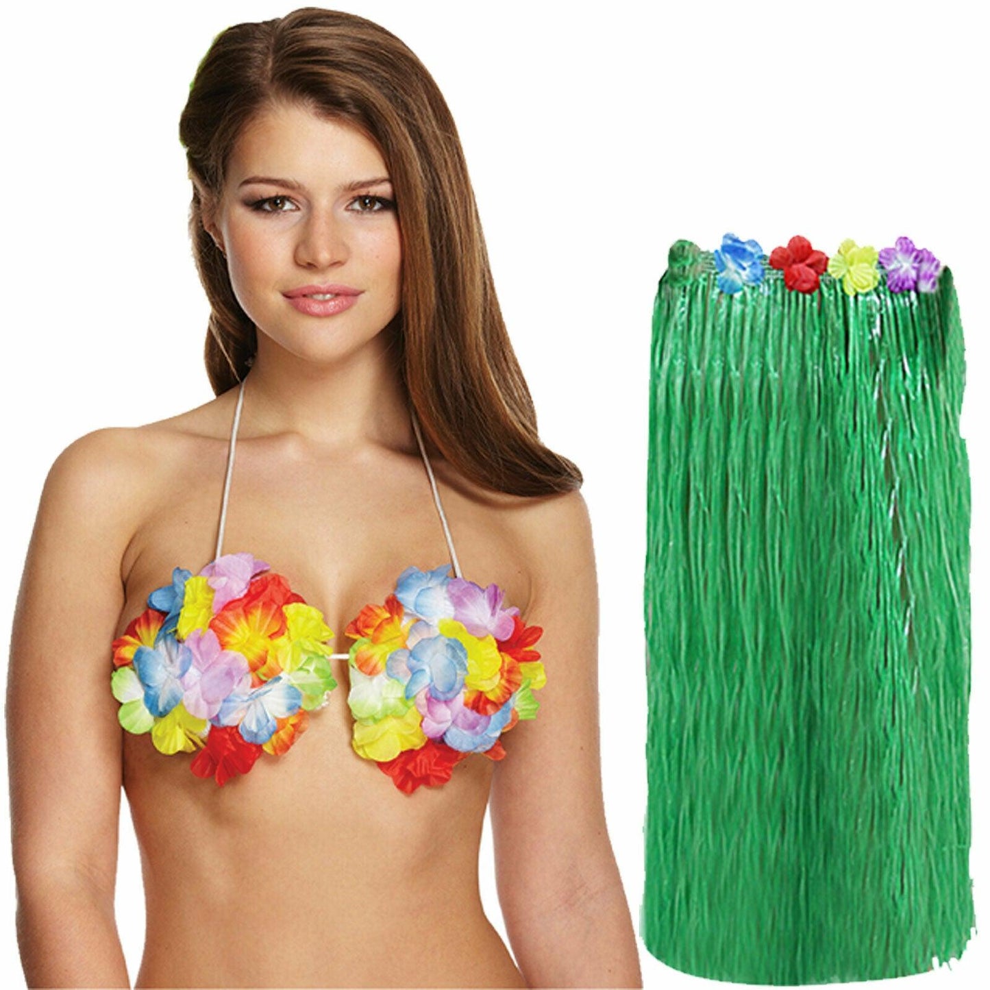 Set Includes: Hula Skirt 80 cm + Flower Bra