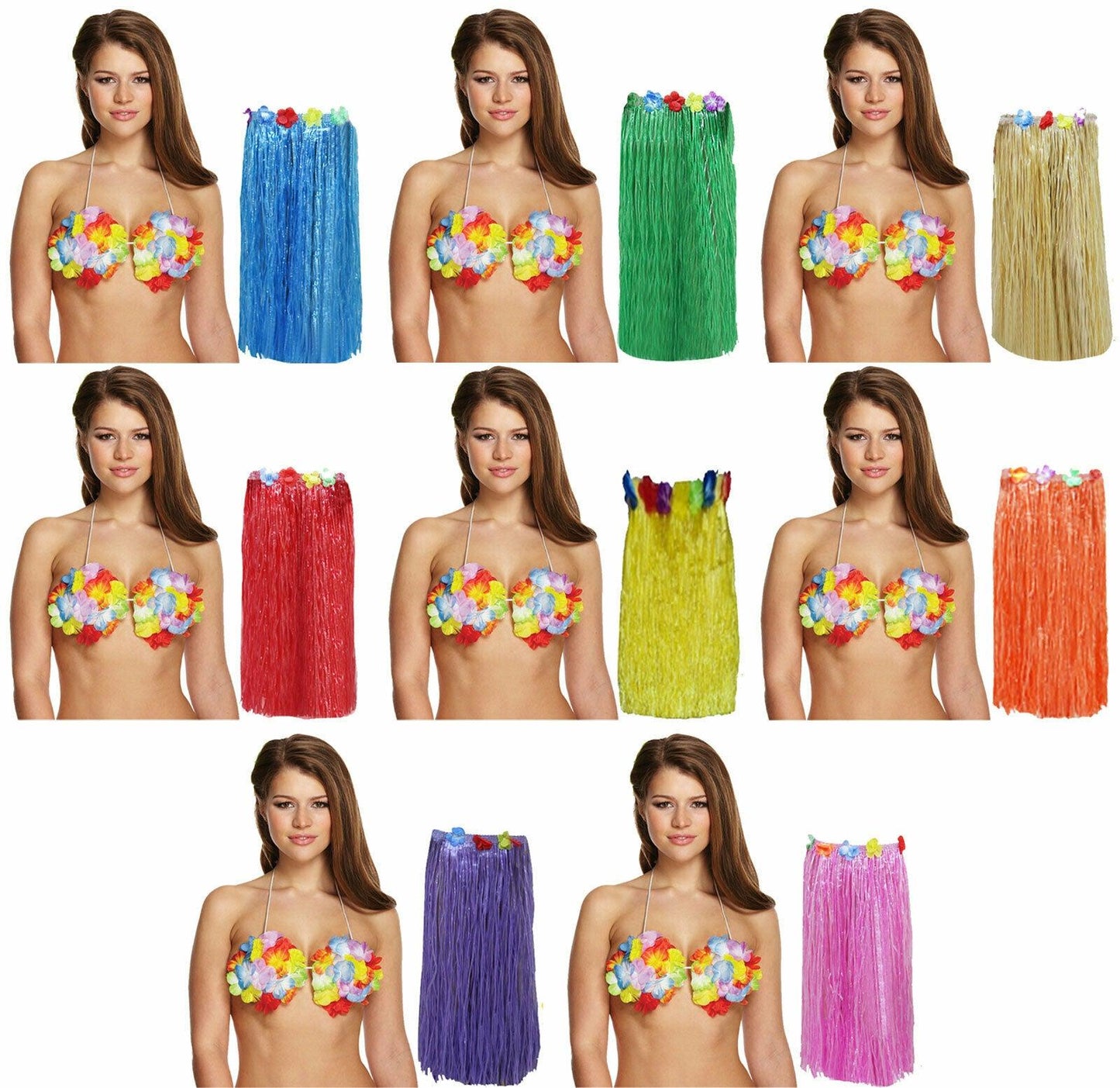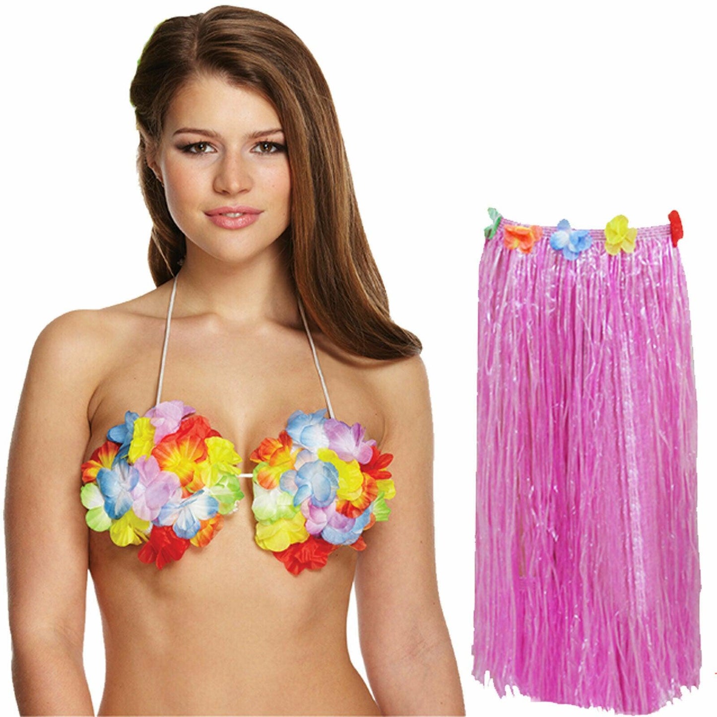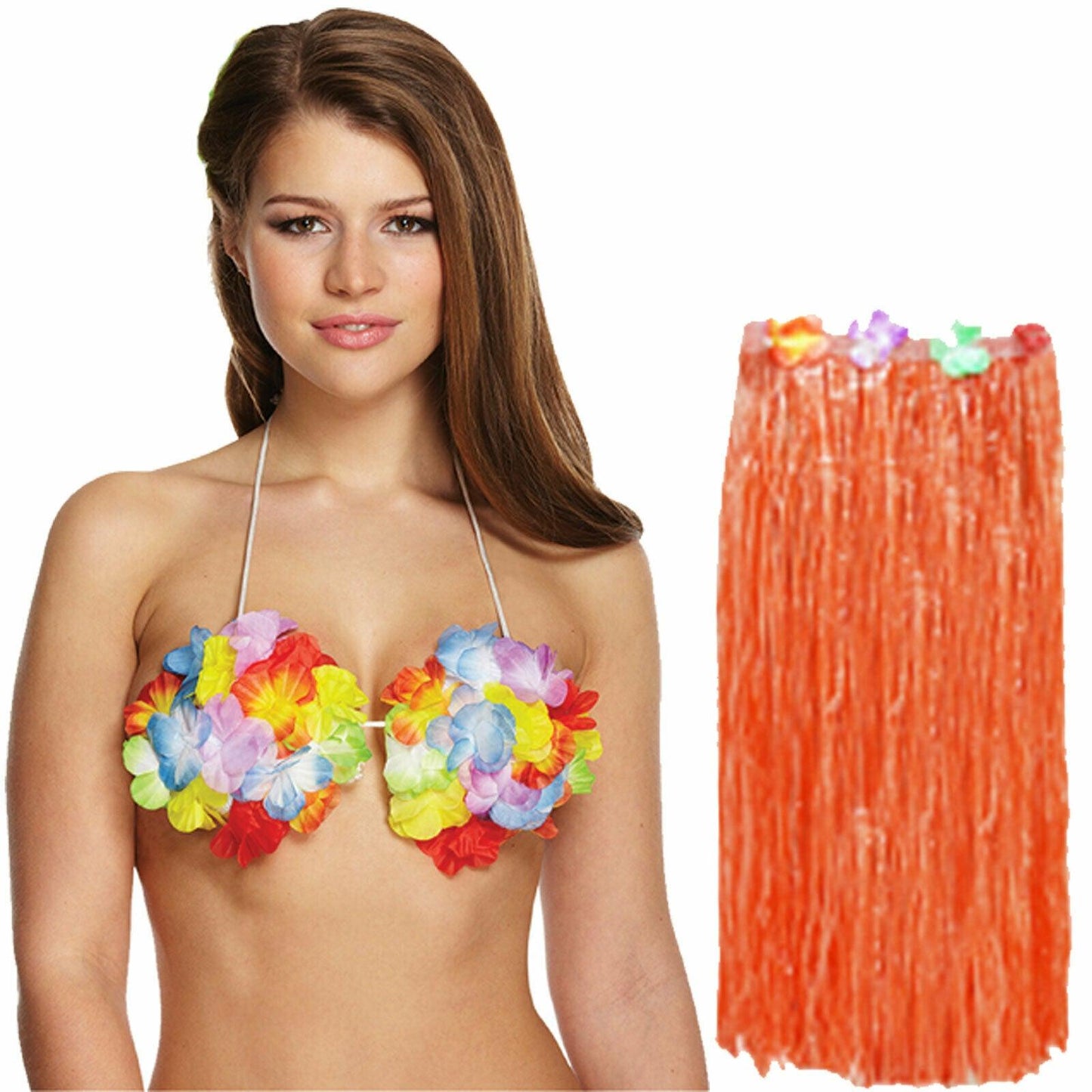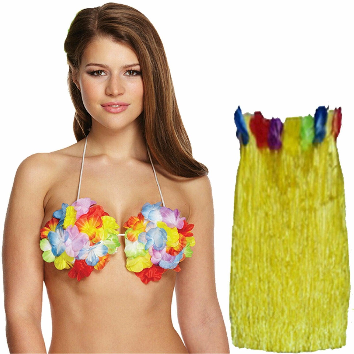 Set Includes: Hula Skirt 80 cm + Flower Bra