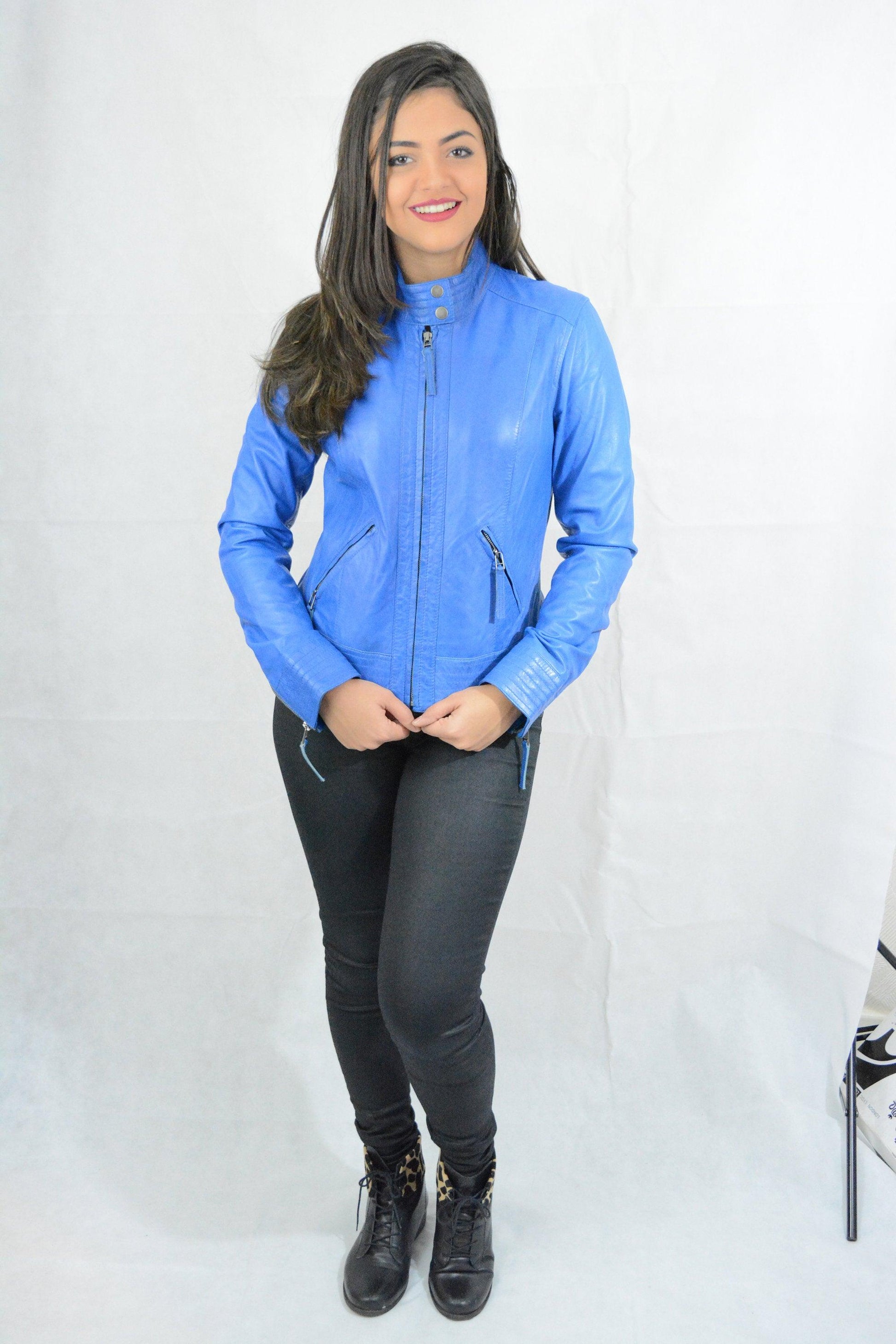 Blue Sheep Leather Jacket for Ladies with zip fastening and button up collar. Great quality and excellent value for money. I have a manufacturing unit where we make jackets for many well known brands who sells these jackets for a much higher prices. I got few samples made to sell in this market to test the market and see how it goes. These are top quality material leather jackets and everything used is of high quality inluding zips buttons etc. Its in UK size M.