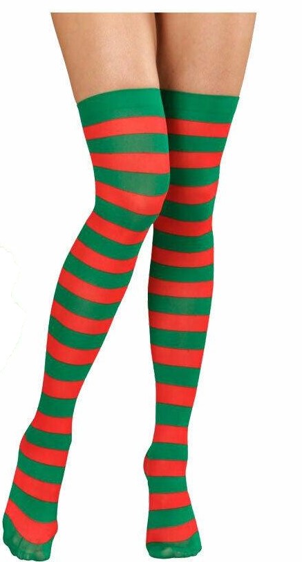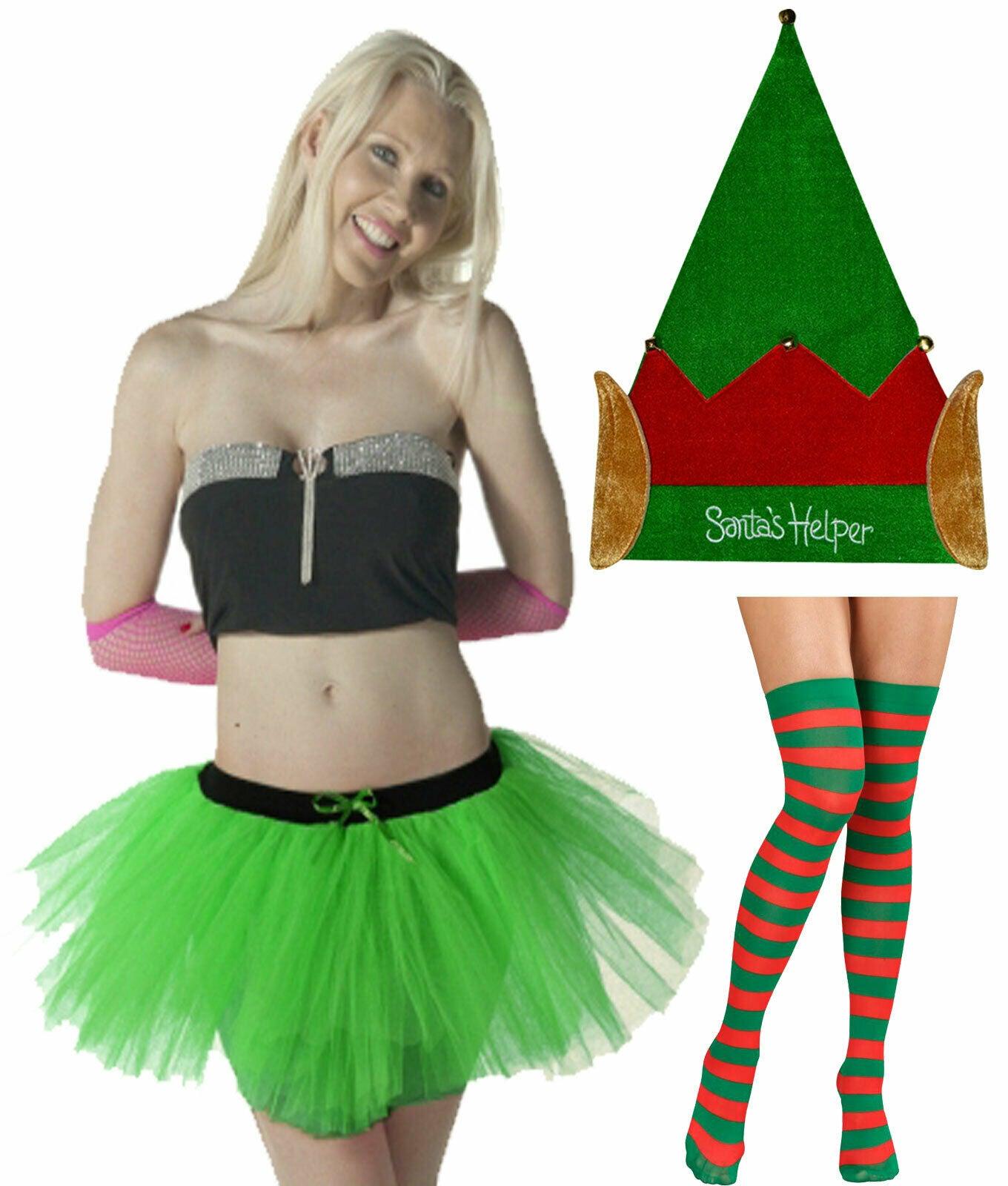 Ladies Elf Santa Helper Tutu Hat Striped OTK Socks Christmas Xmas Fancy Dress