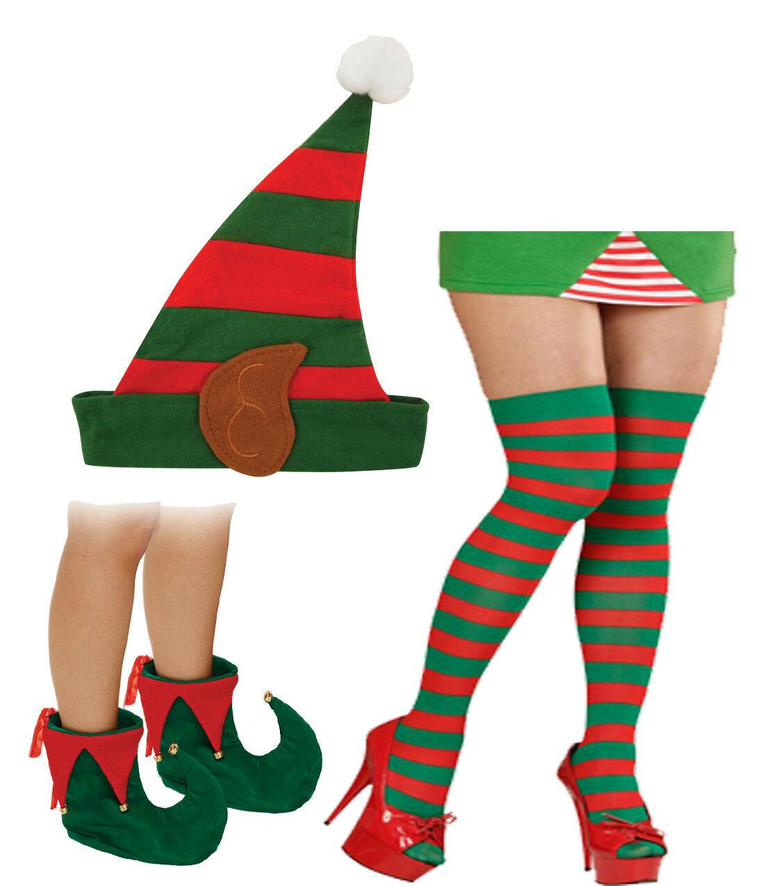 Ladies Elf Santa’s Helper Striped Socks Shoes Hat Christmas 3 Pc Fancy Dress