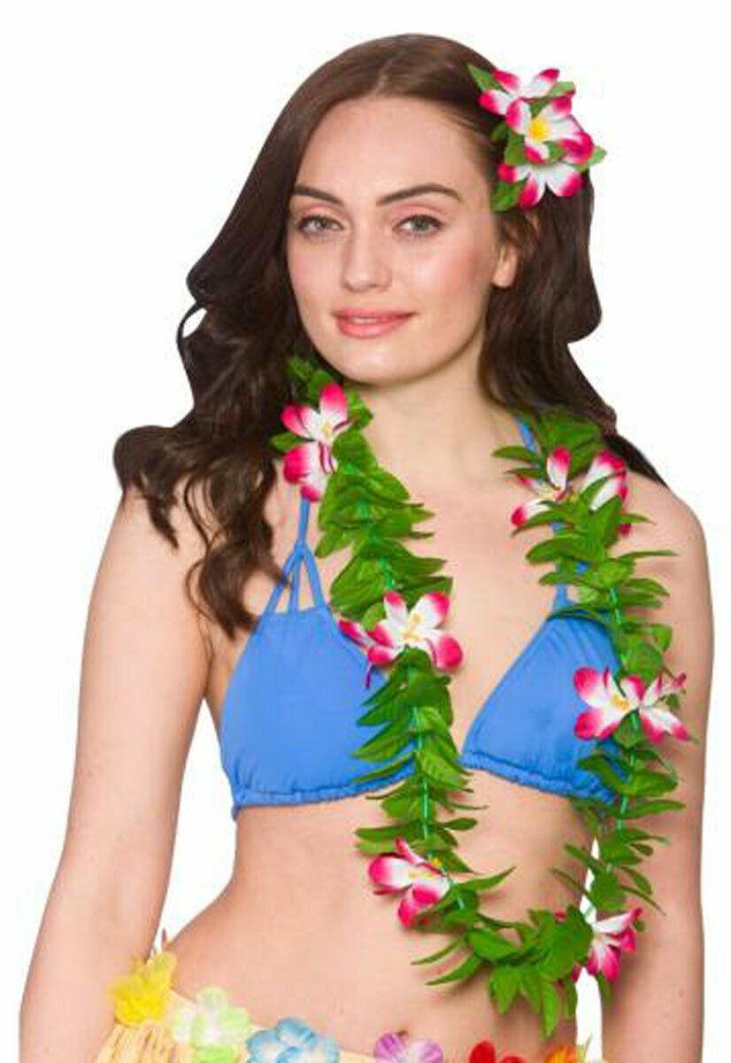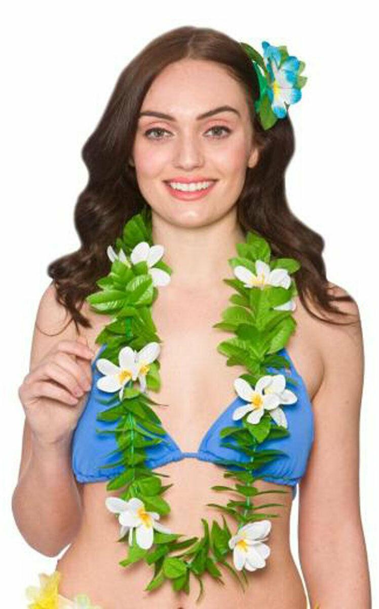 Ladies Girls Green Leaf Lei with Flowers Hawaiian Summer Holiday Beach Party Lei