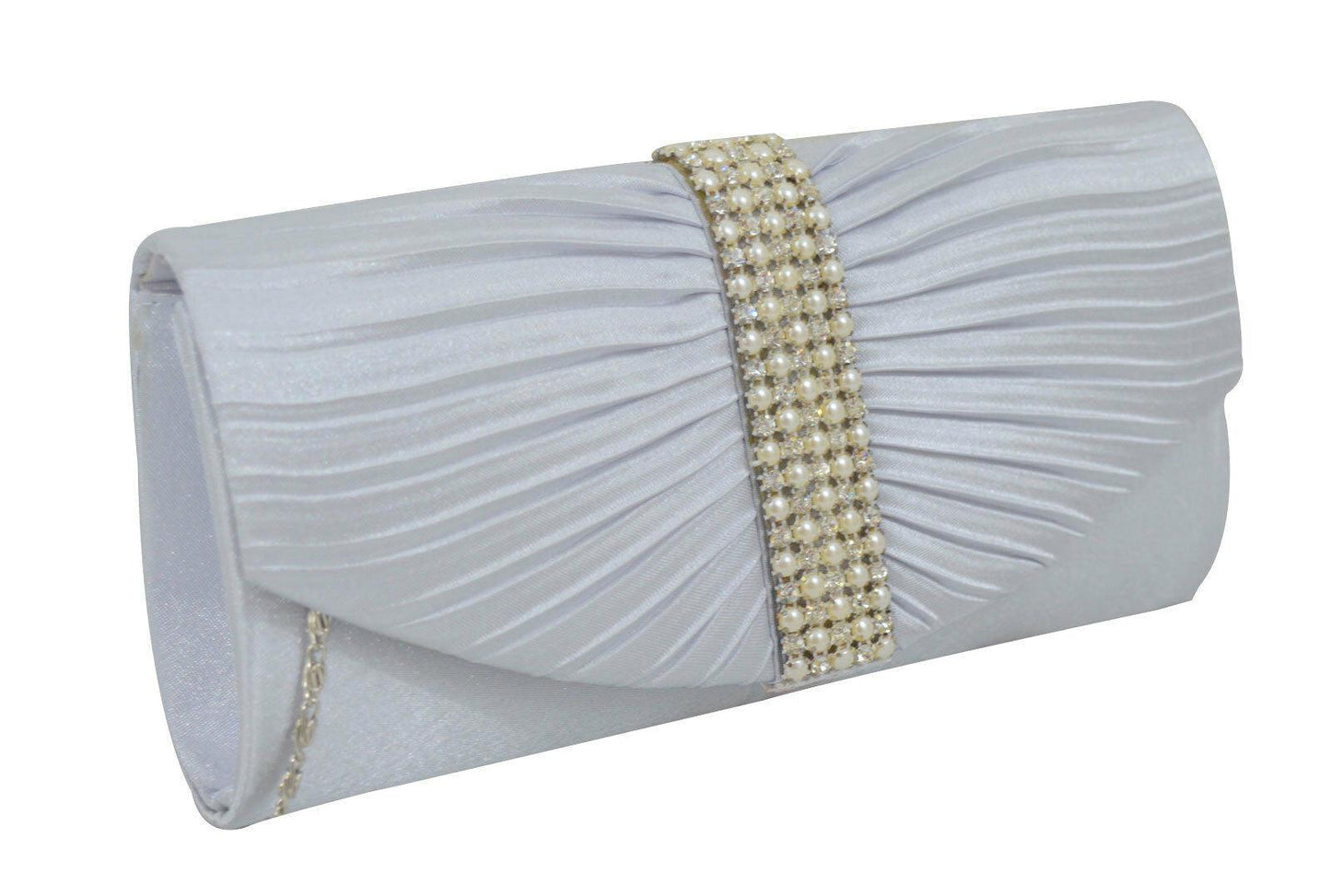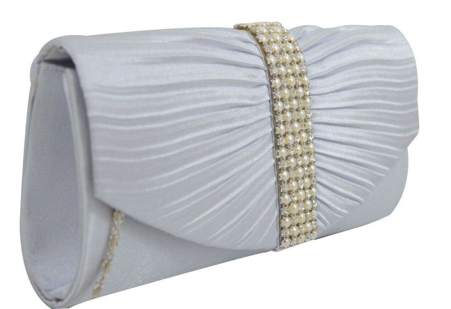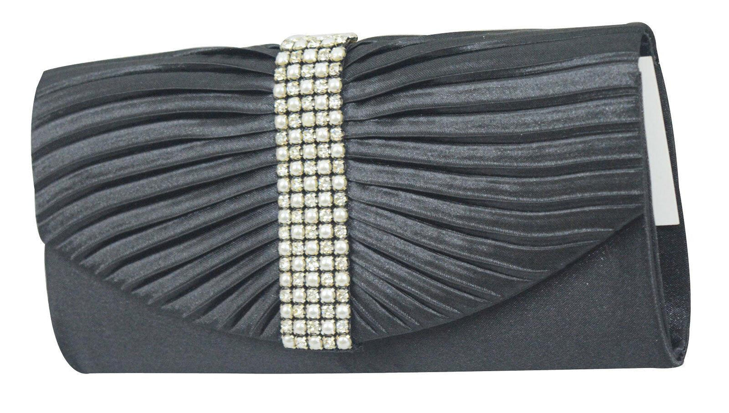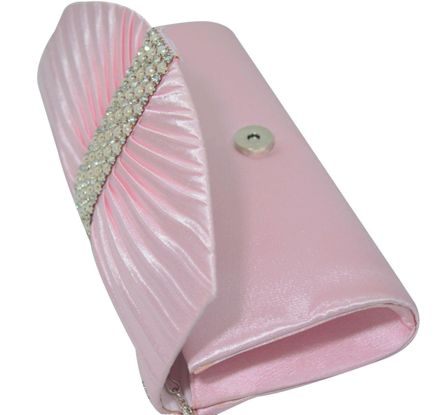 Step ahead of fashion with this New Ladies Satin Pleated Evening Party Wedding Prom Envelope Clutch Hand Bag. It is Very beautiful satin diamante bag. Evening Clutches/Bags/Wallets. Perfect for wedding parties or a night out. This bag is made with high quality satin fully lined. Ideal for Wedding or Festival Decorations.