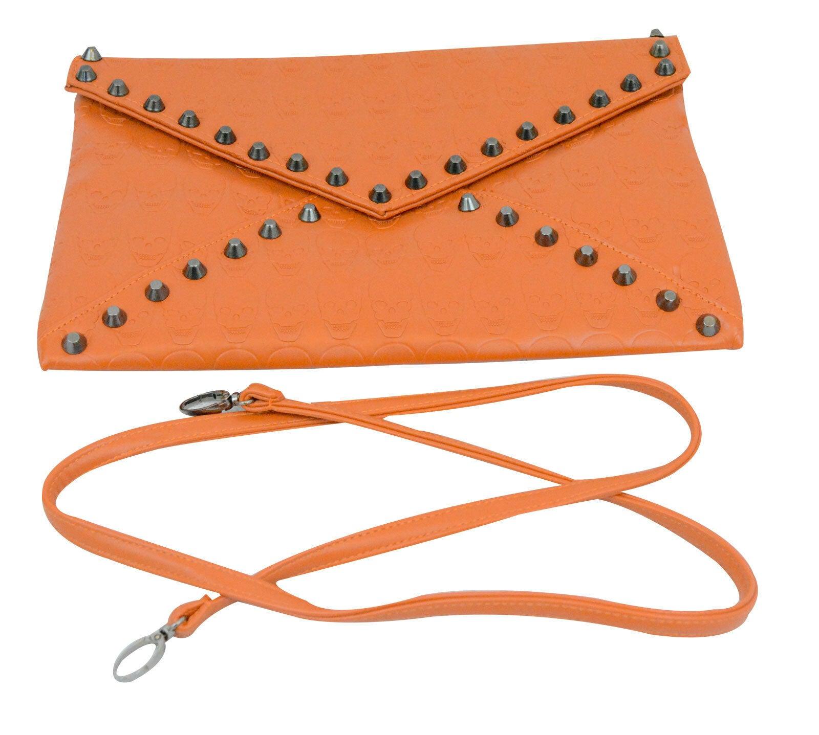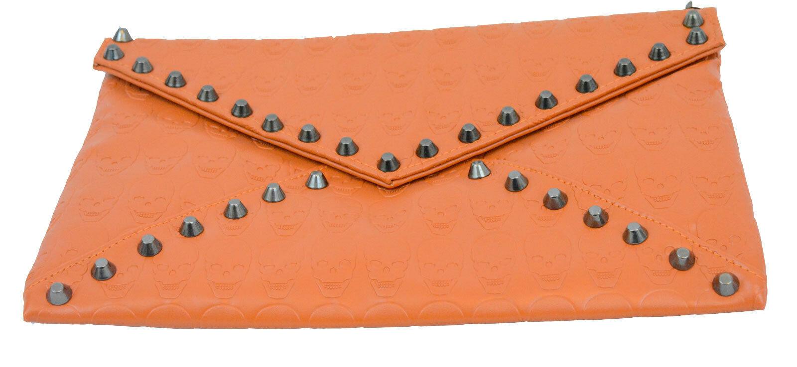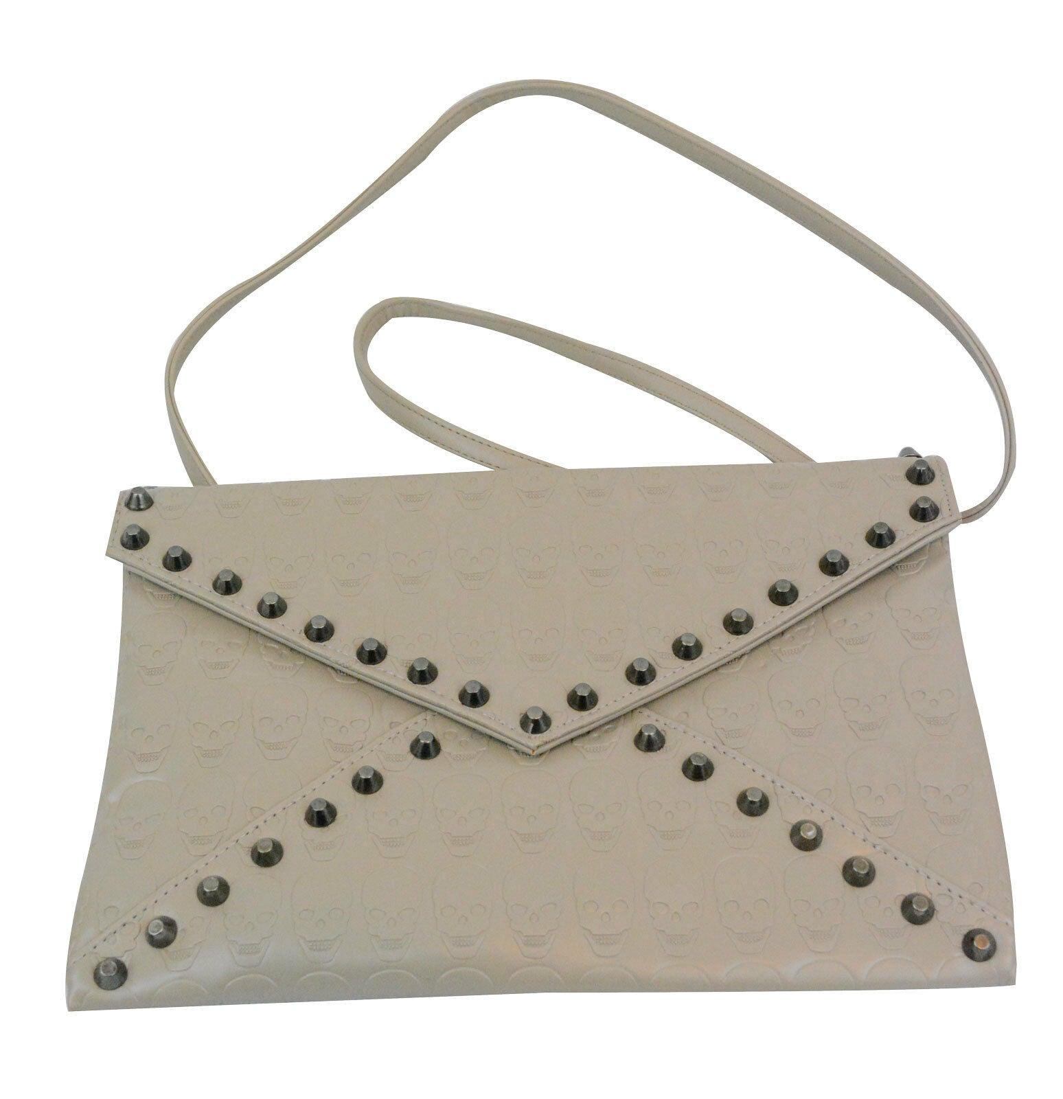 Ladies Girls Skull Embossed Envelop Stylish Clutch Purse with Hematite Studs