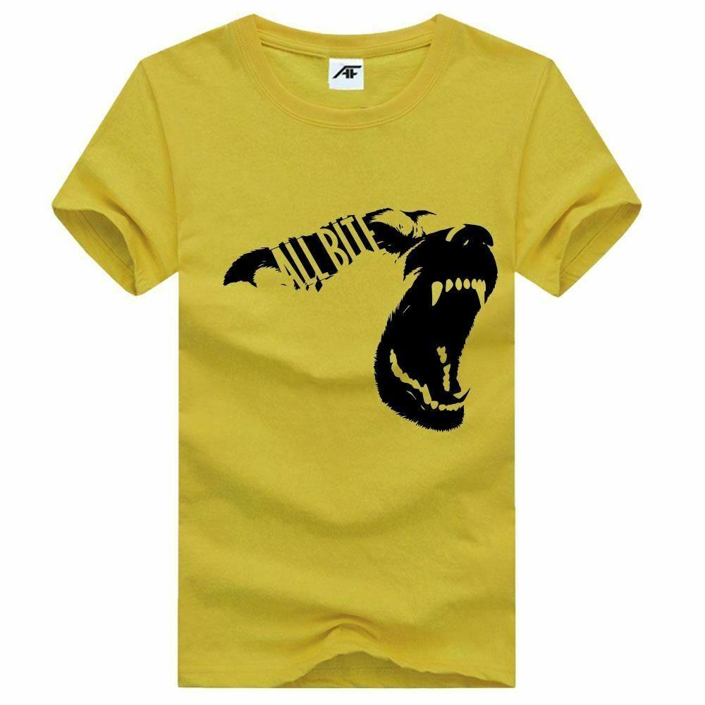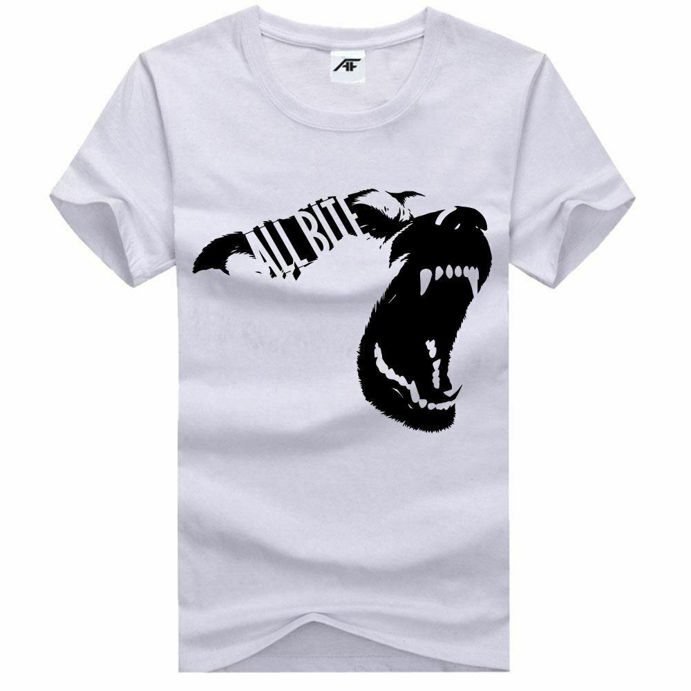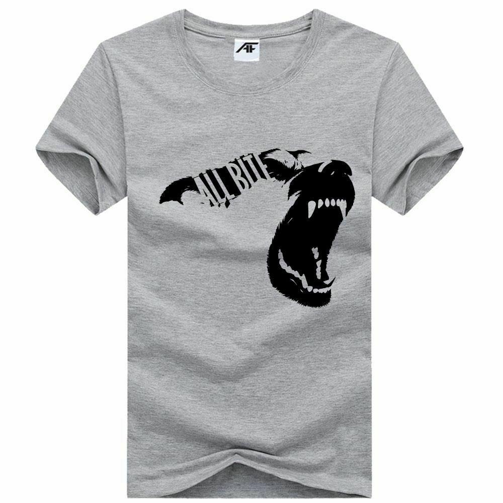 Ladies Men’s Cotton All Bite Dog Attacking Silhouette Printed Graphic T-Shirt Ad