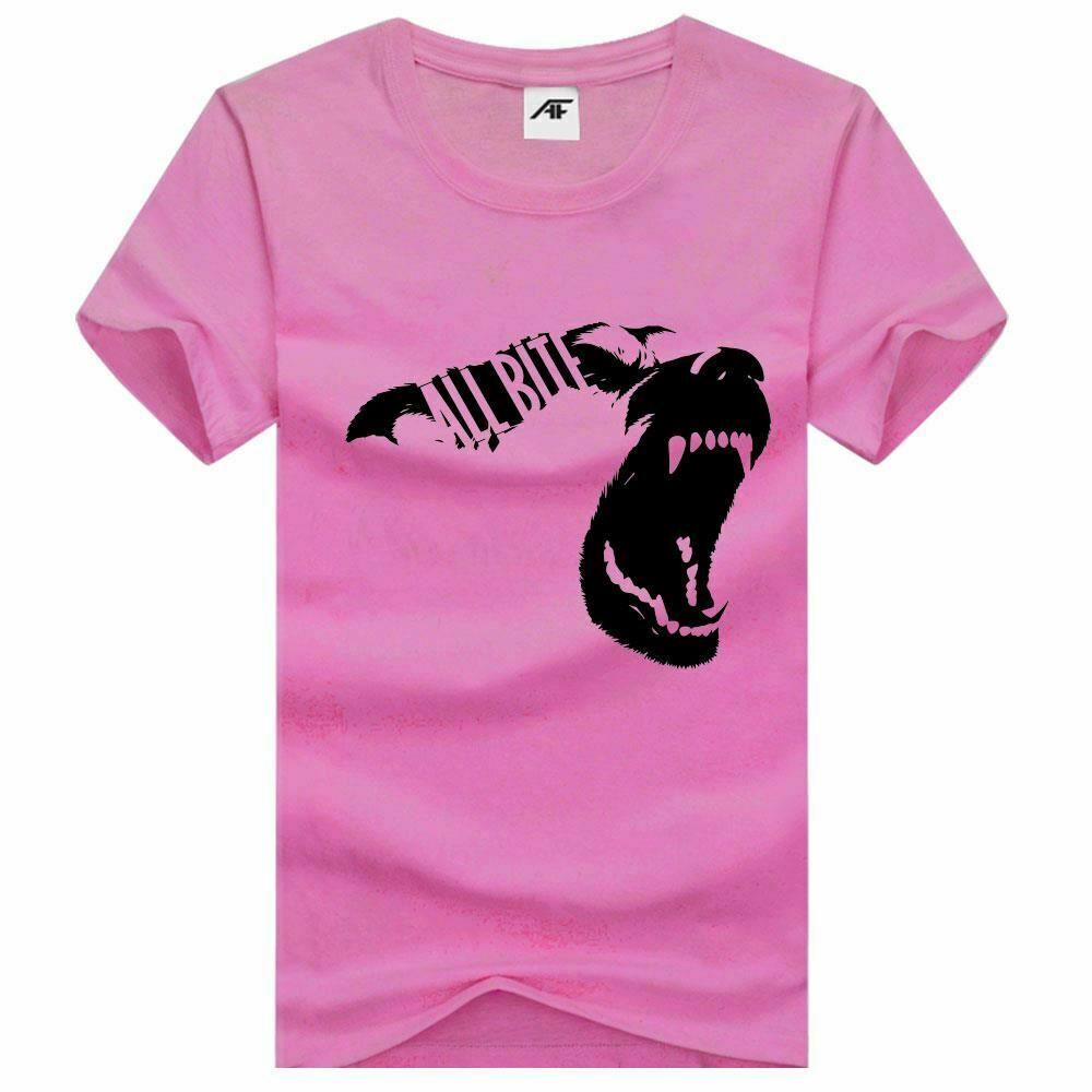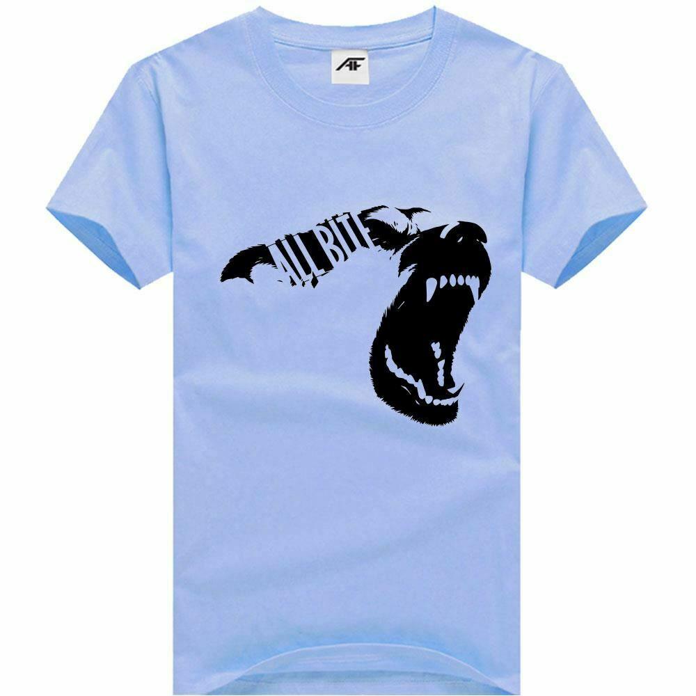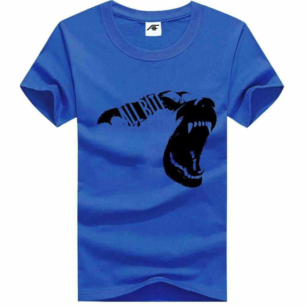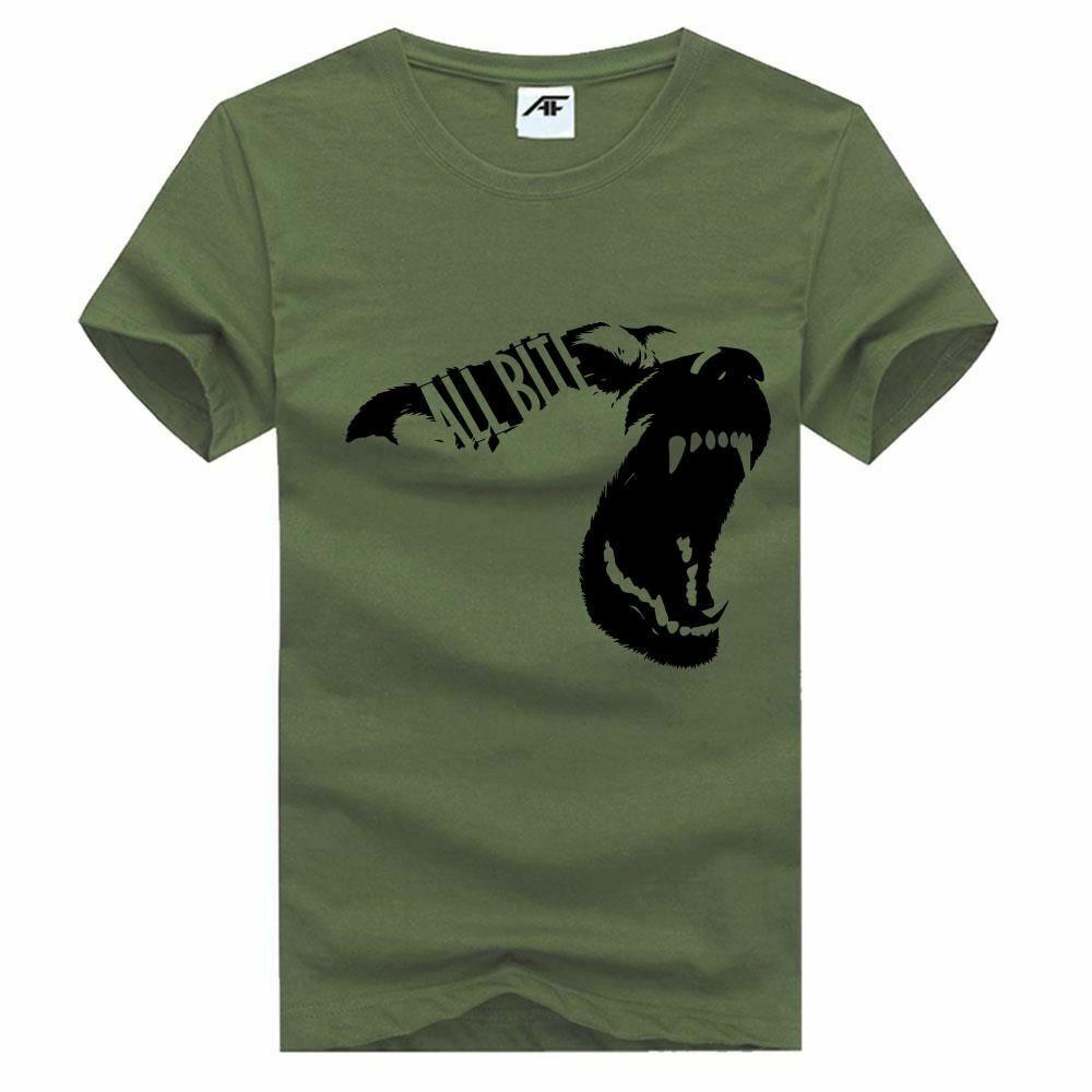 Ladies Men’s Cotton All Bite Dog Attacking Silhouette Printed Graphic T-Shirt Ad
