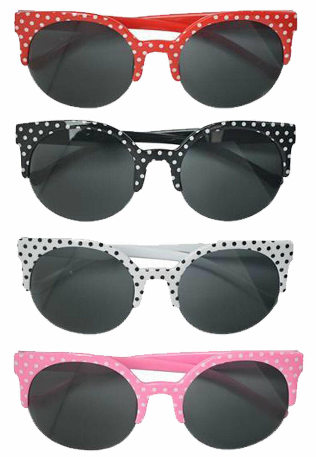 Ladies Polka Dot Cat Eye 50’s Half Frame Sunglasses Summer Hen Night Glasses