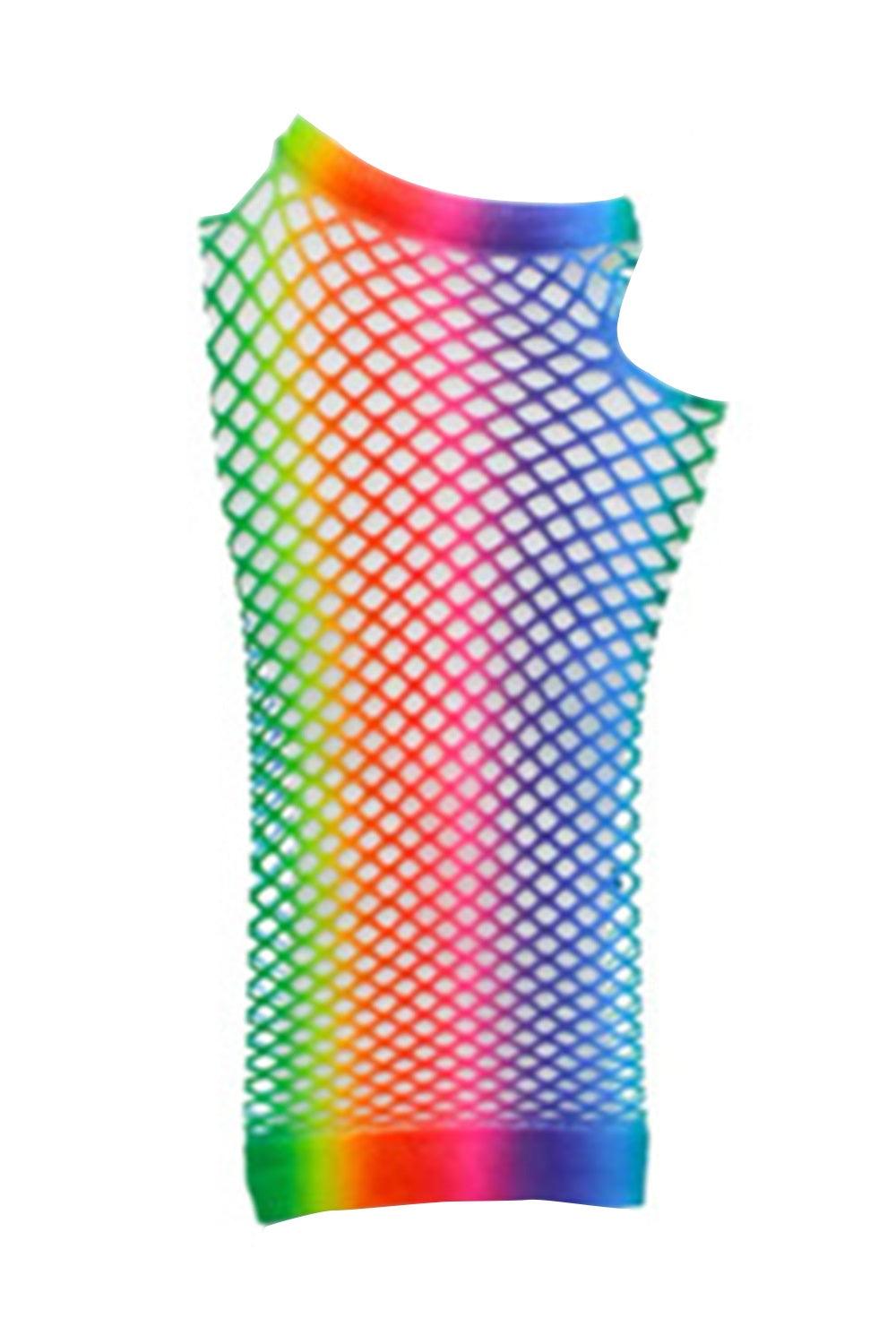 Ladies Rainbow Long Mesh Fishnet Fingerless Gloves Elbow Long Glove LGBTQ Gay Pride Party wear