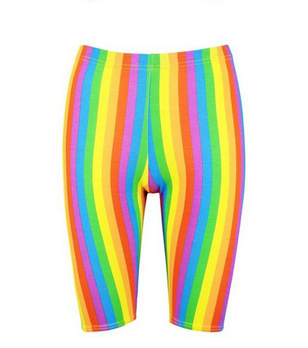 Ladies Rainbow Striped Printed Cycling Short LGBTQ Gay Pride Parade Active Gym Wear Hot Pants