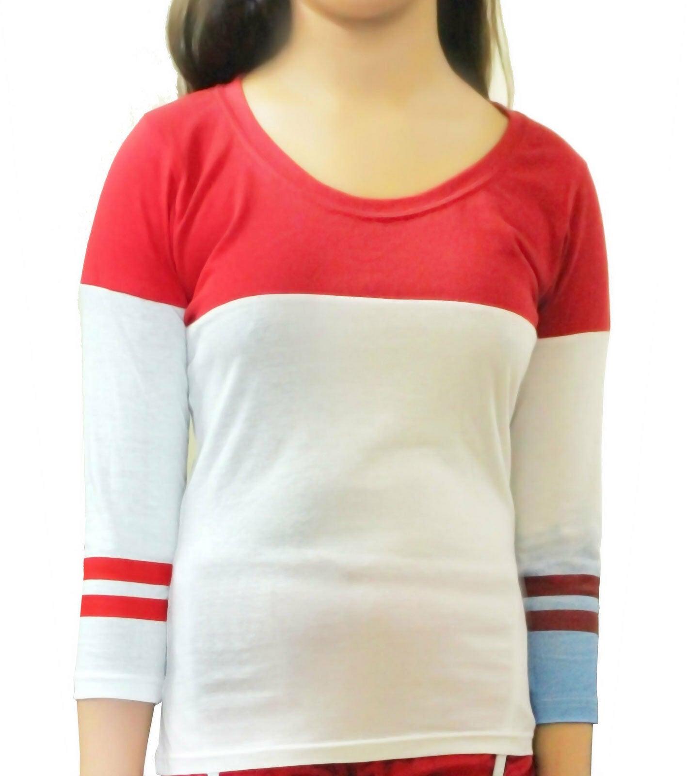Ladies Red Blue White T Shirt Harley Quinn Inspired Long Sleeves Round Neck Top