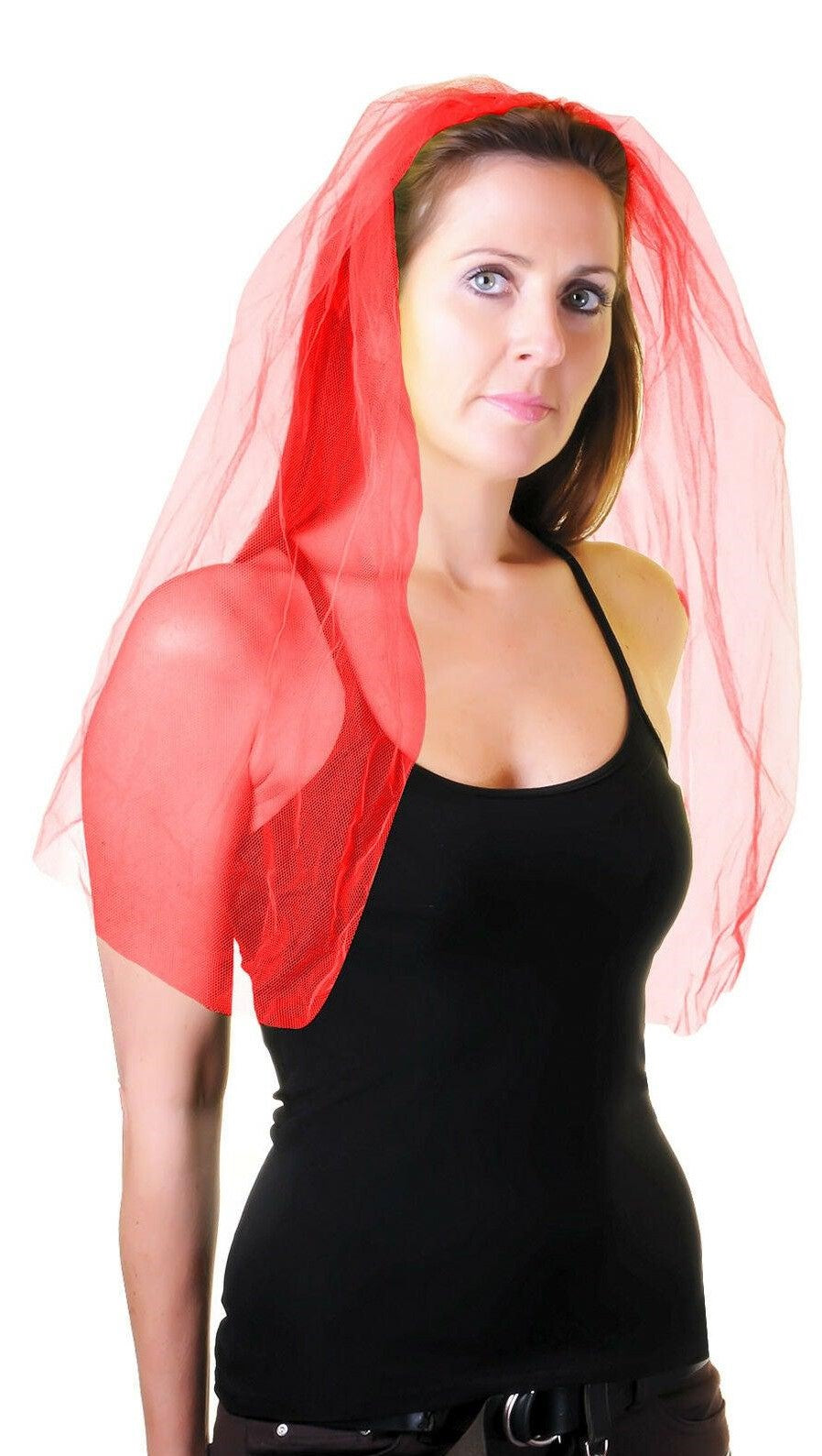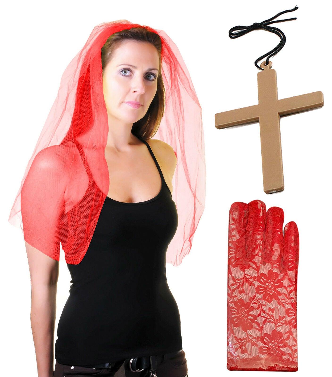 Ladies Red Veil on Hair Band Lace Gloves Monk Cross Christmas Fancy Dress