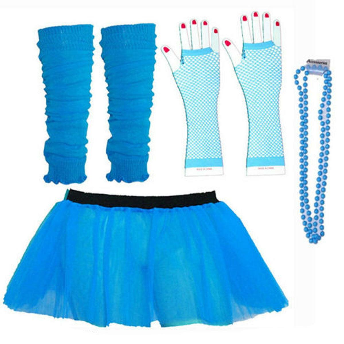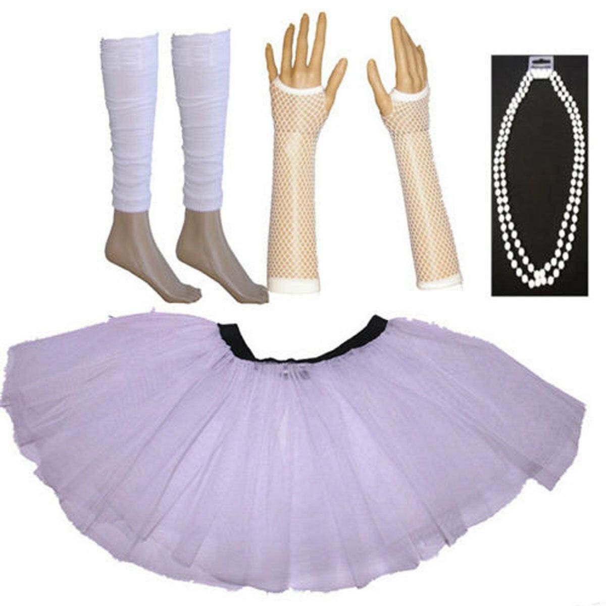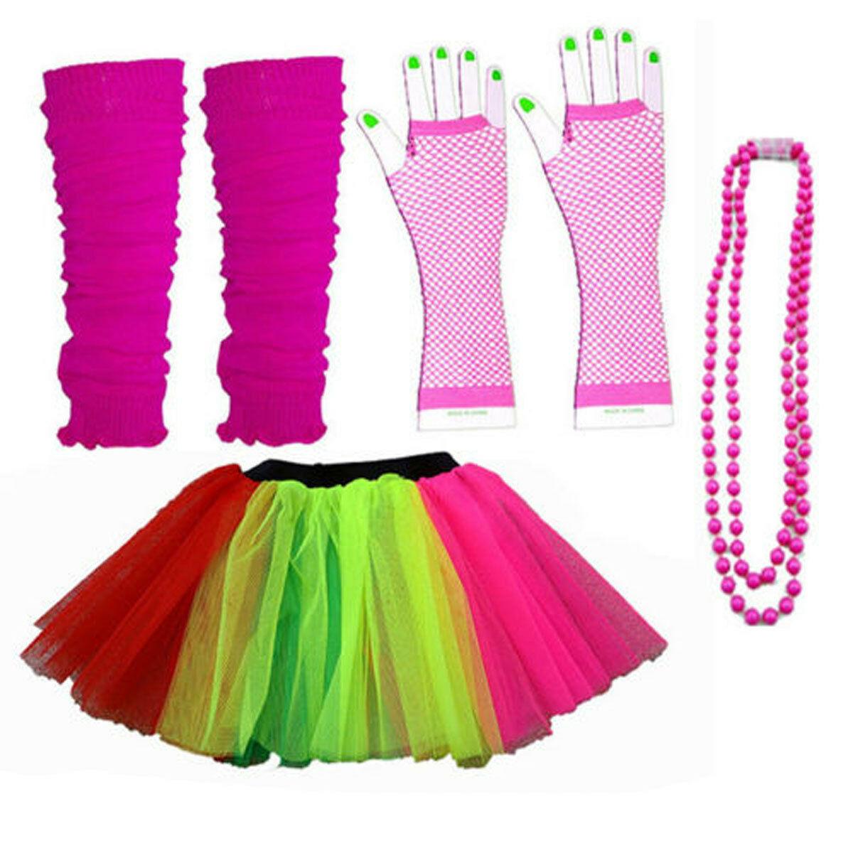 Ladies Girls Tutu Skirt Gloves Leg Warmers Beads 1980’s Party Hen Night Party Costume