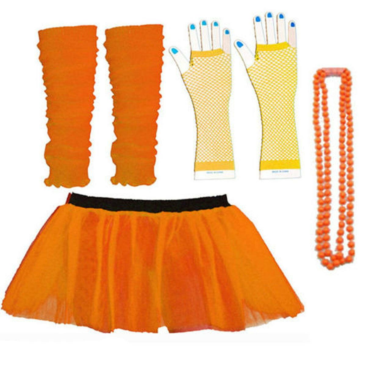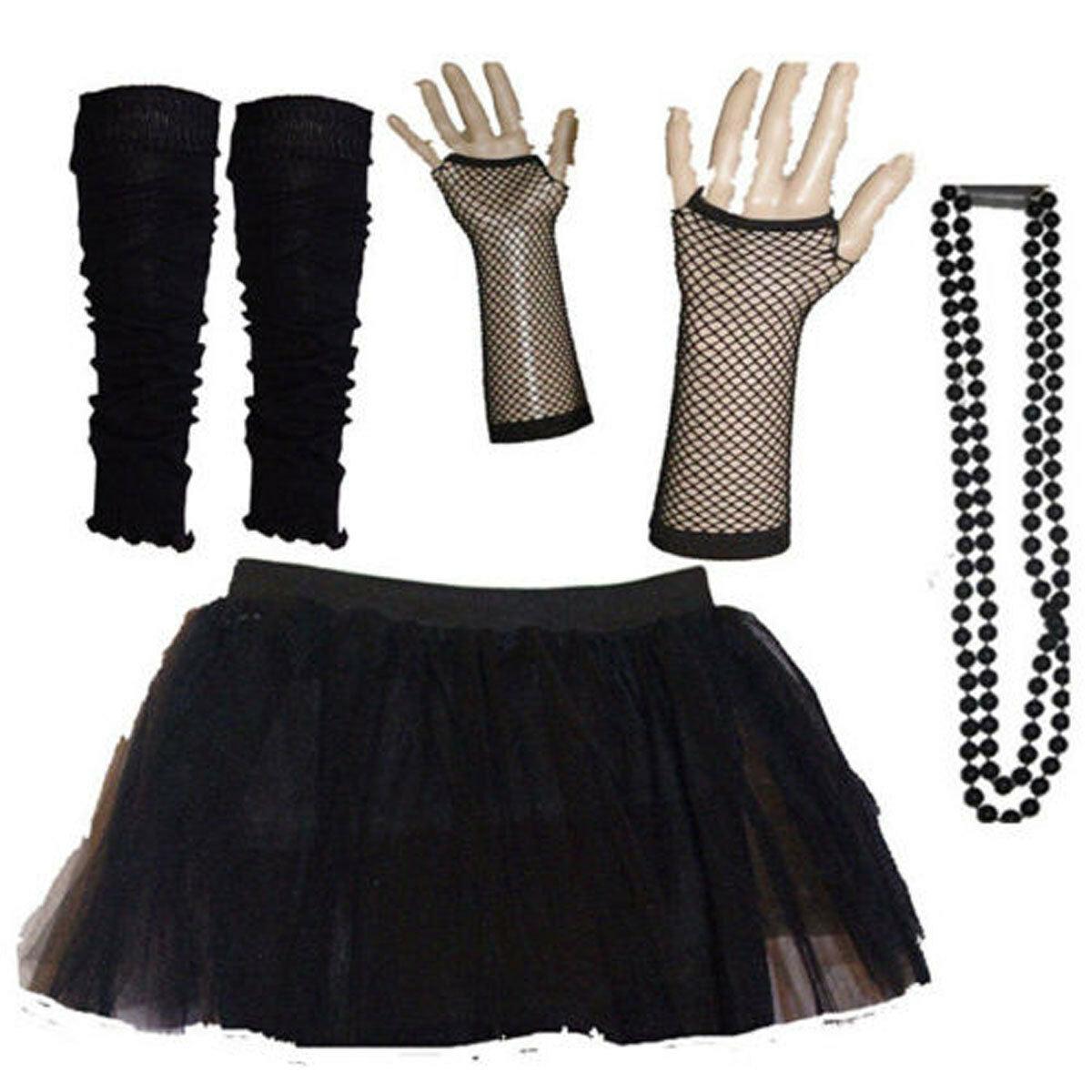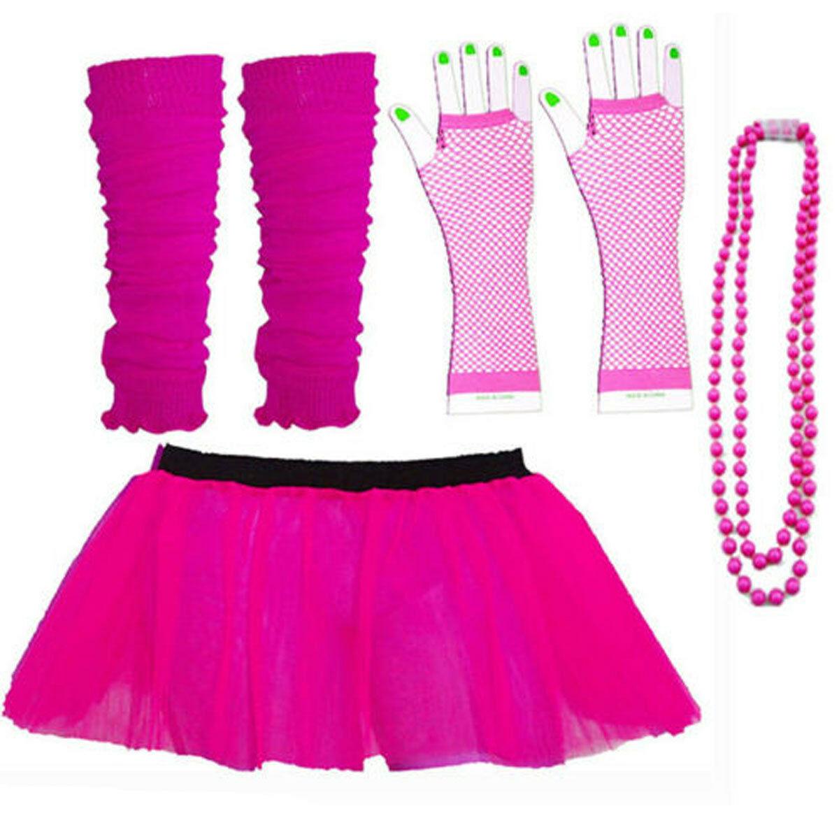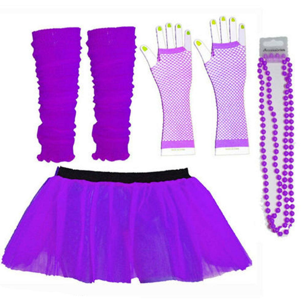 Ladies Girls Tutu Skirt Gloves Leg Warmers Beads 1980’s Party Hen Night Party Costume
