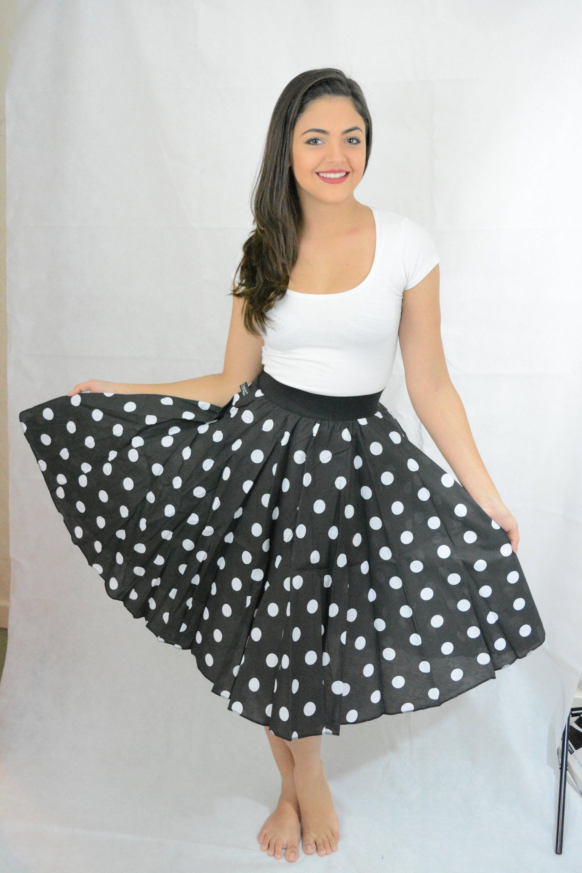 Ladies Womens Chick Black White Polka Dot Skirt (18 Inches) One Size Fits UK 8-16