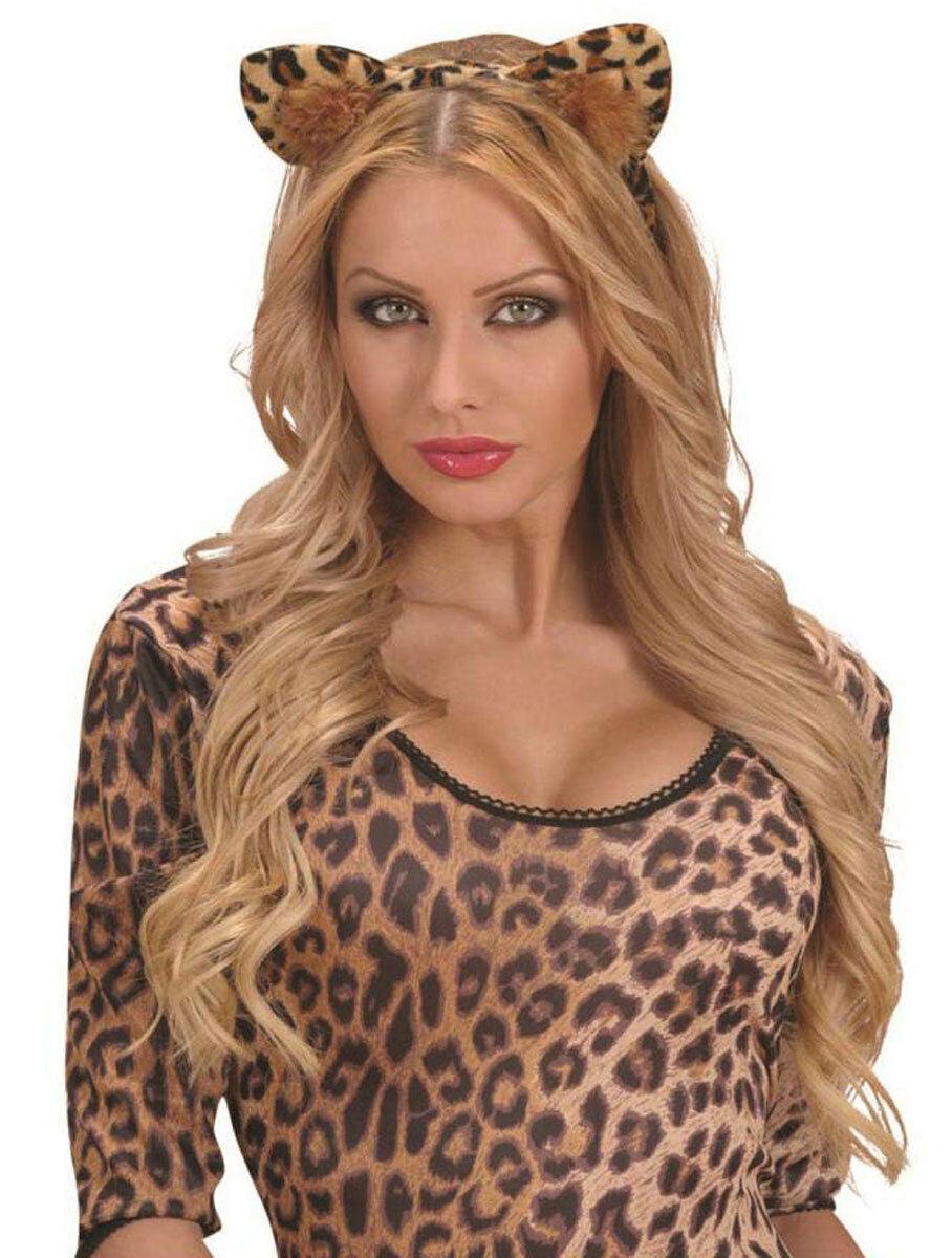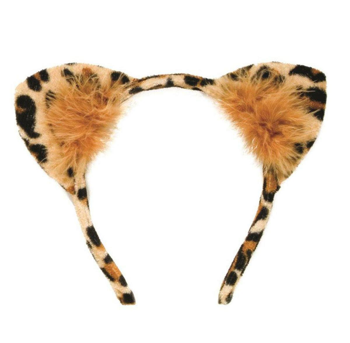 Leopard Ears Plush Velvet Marabou Trim Flexible Plastic Headband Fancy Dress