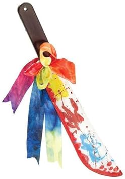 Men’s Killer Clown Style Halloween Set – Red Afro Wig, Face Paint, Fake Blood, Machete Prop, Red Braces & Bow Tie – Adult Horror Fancy Dress Costume Accessories Kit