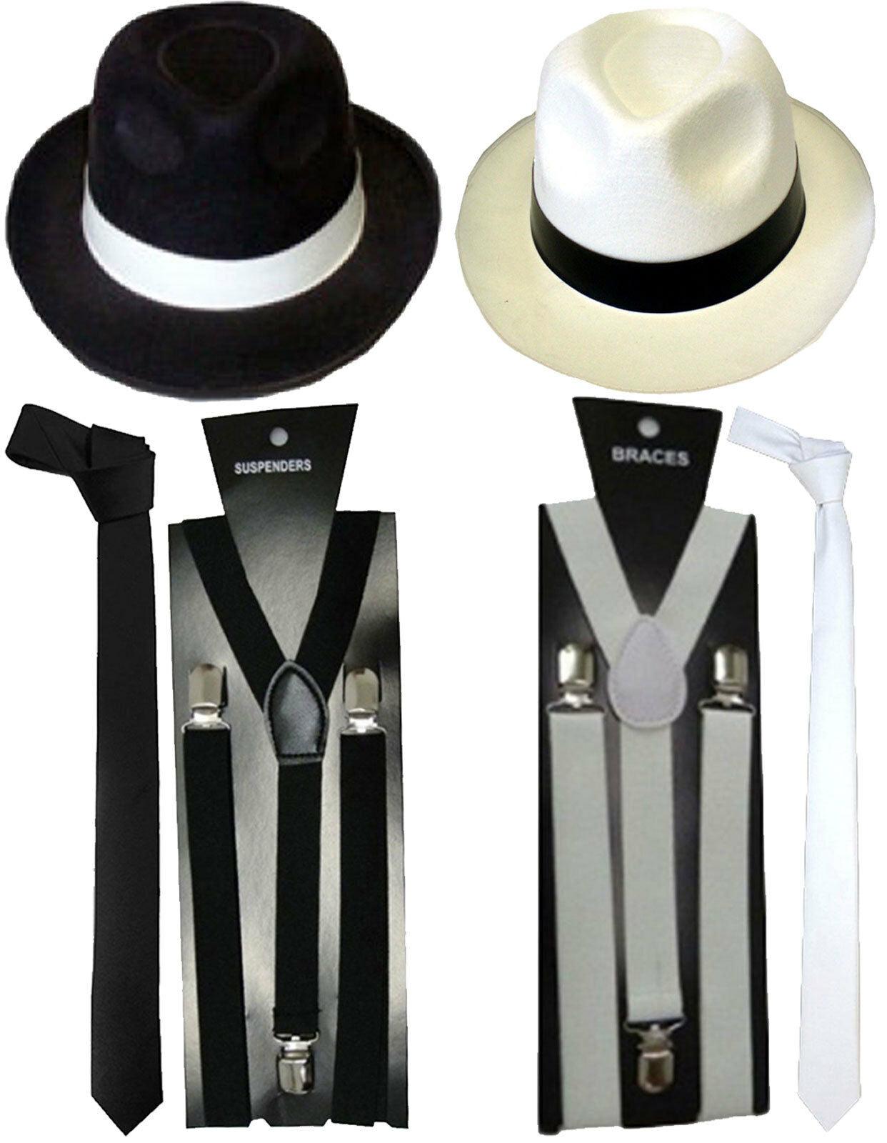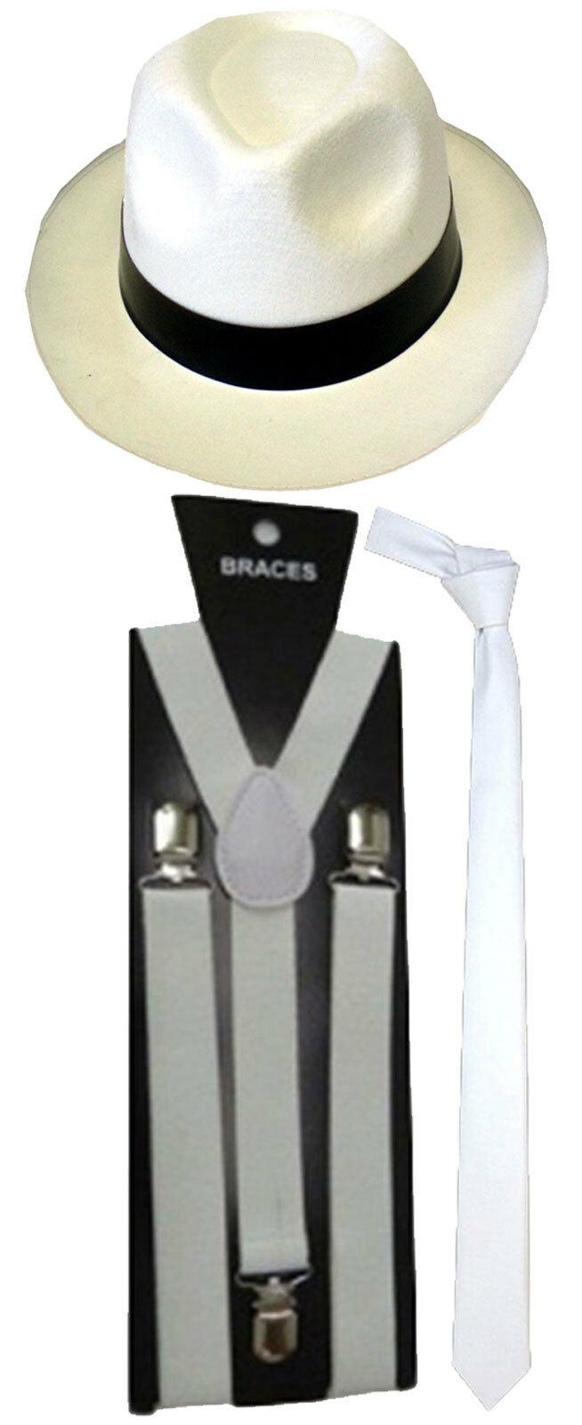 Mens 1920s hat tie braces gangster roaring pimp fancy dress