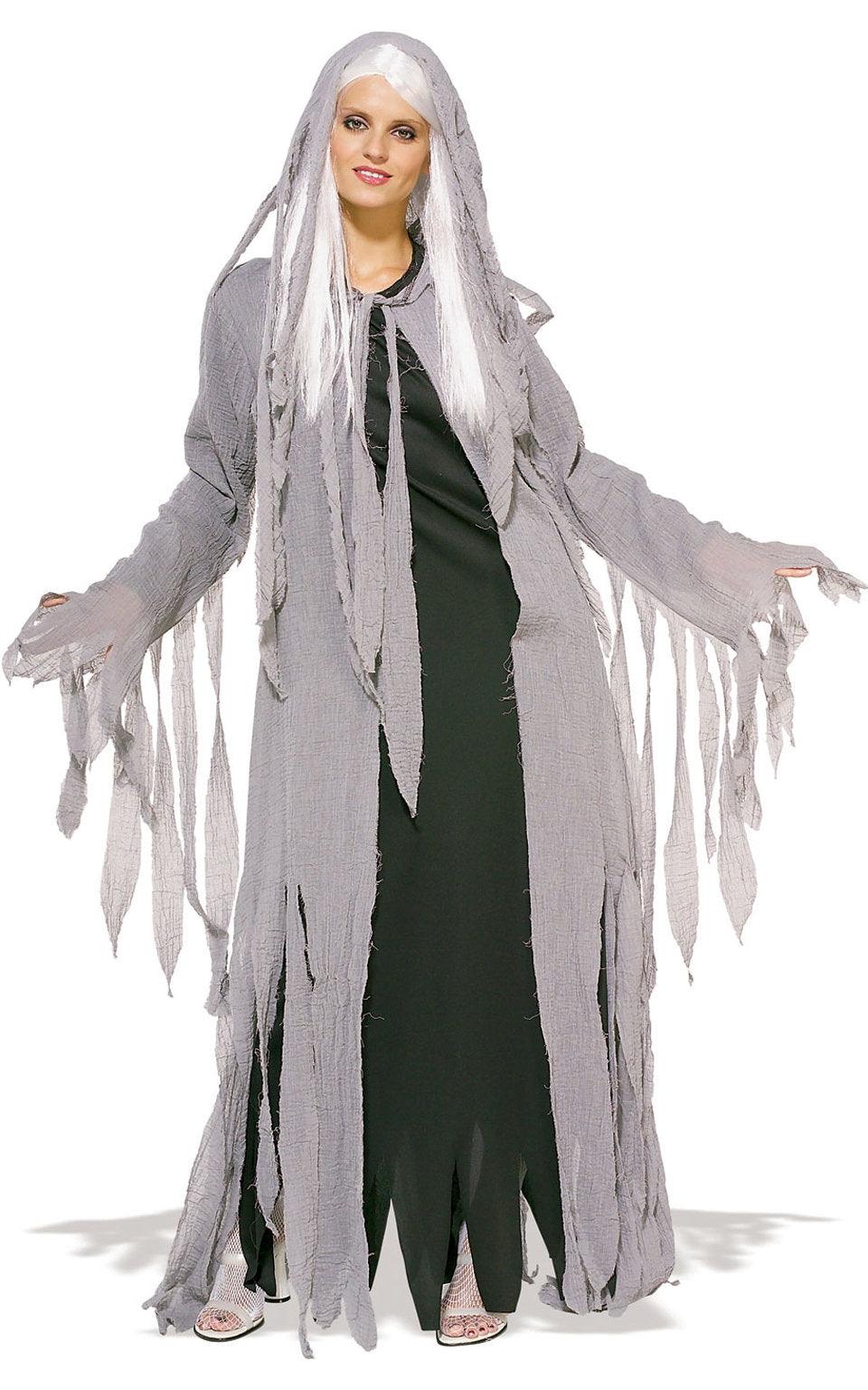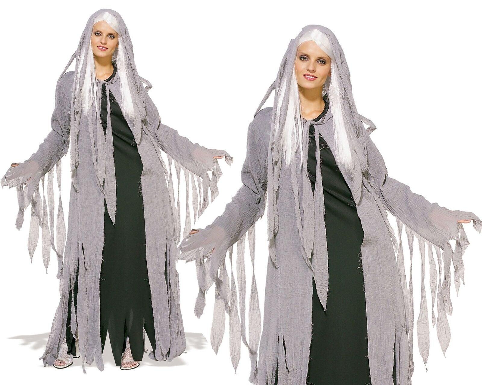 Midnight Spirit Fancy Dress Ladies Costume Ghost Ghoul Halloween Outfit + Wig STD