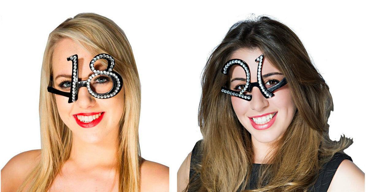 New Birthday Girls Aged 18 & 21 Diamante Glasses Party Accessories