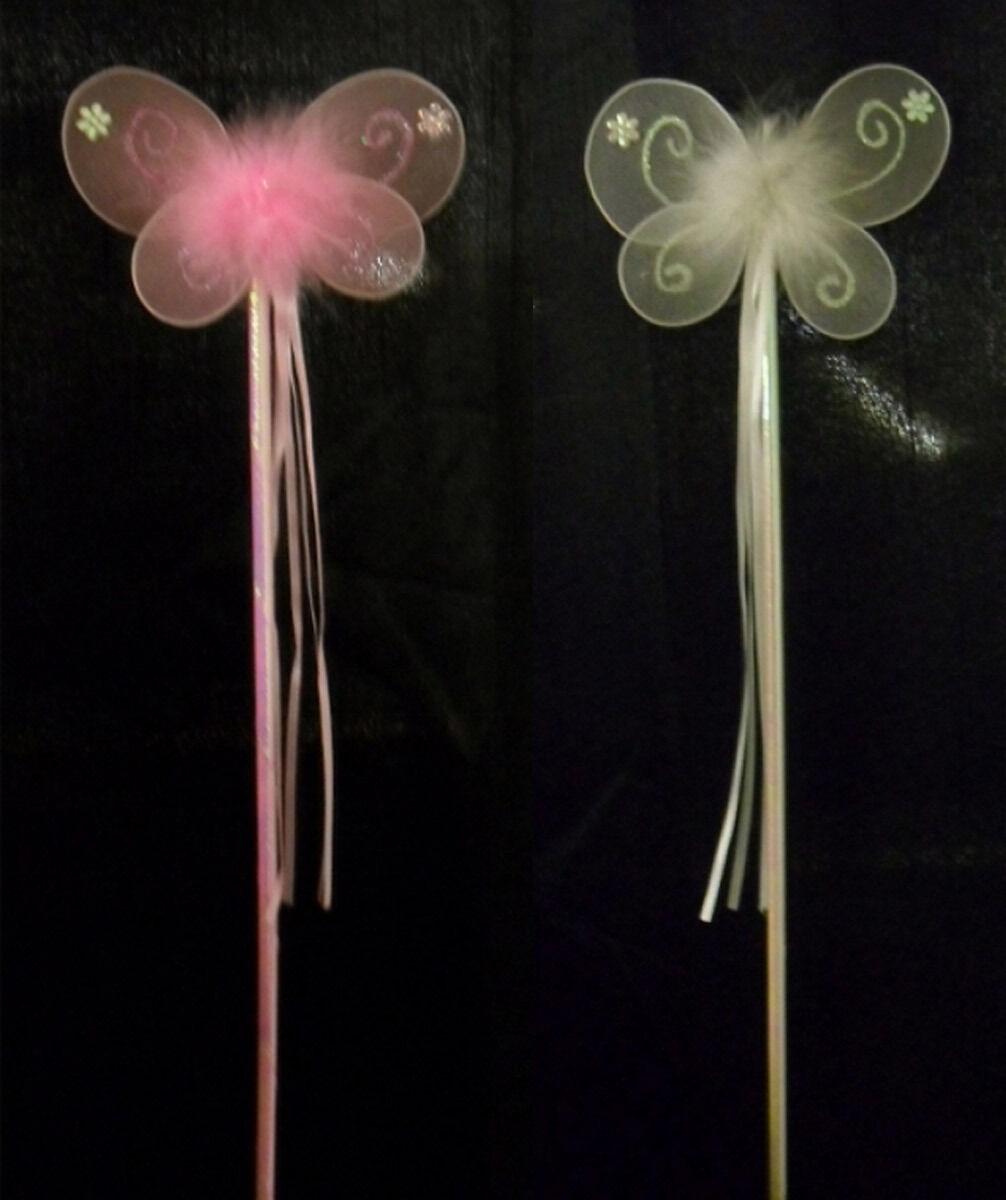 New Ladies Girls Pink White Butterfly Fairy Wand Dressing Up Wand