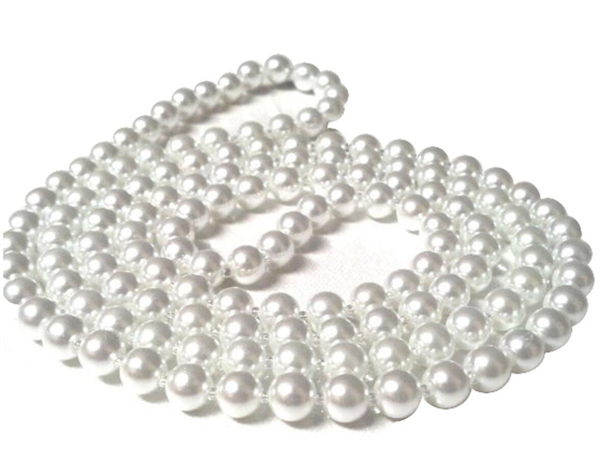 New Ladies Girls Plastic Pearl Bead White Necklace 48 inch Flapper