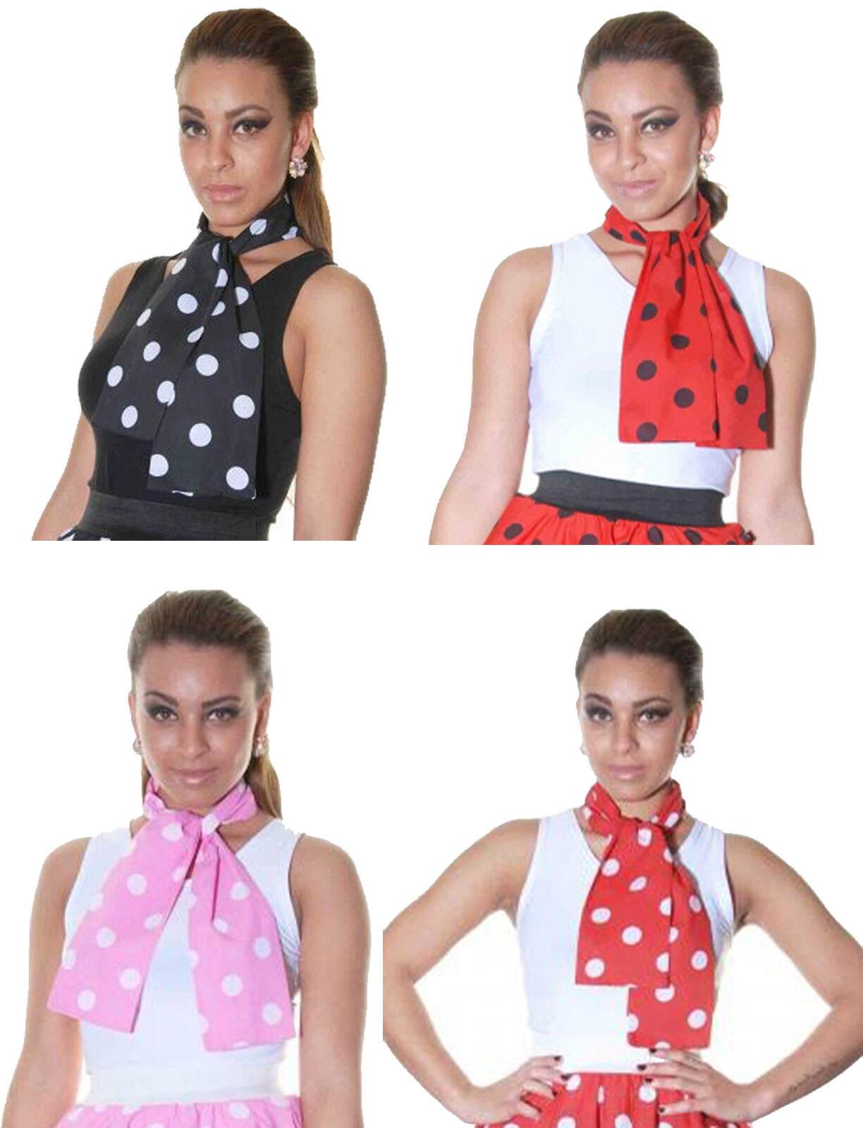 New Ladies Girls Polka Dot Scarf Printed Scarf Fancy Dress Accessory