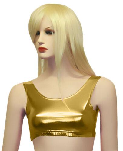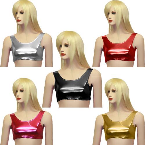 New Ladies Women Shiny Metallic Dance Crop Top Vest Top 5 Colours